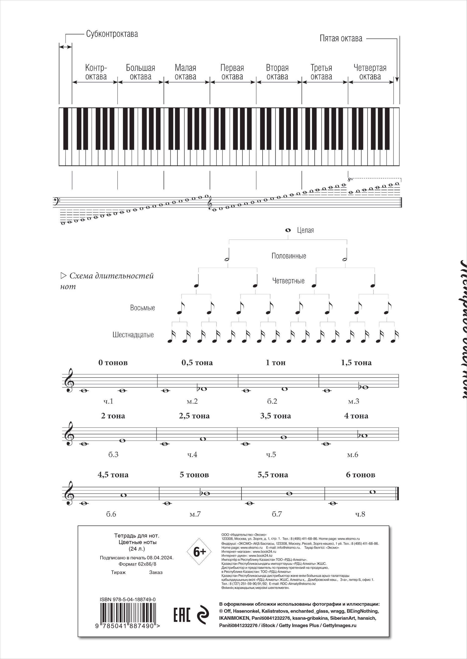 Аннотация: Тетрадь для нот. Цветные ноты (24 л., А4, вертикальная, скрепка)
