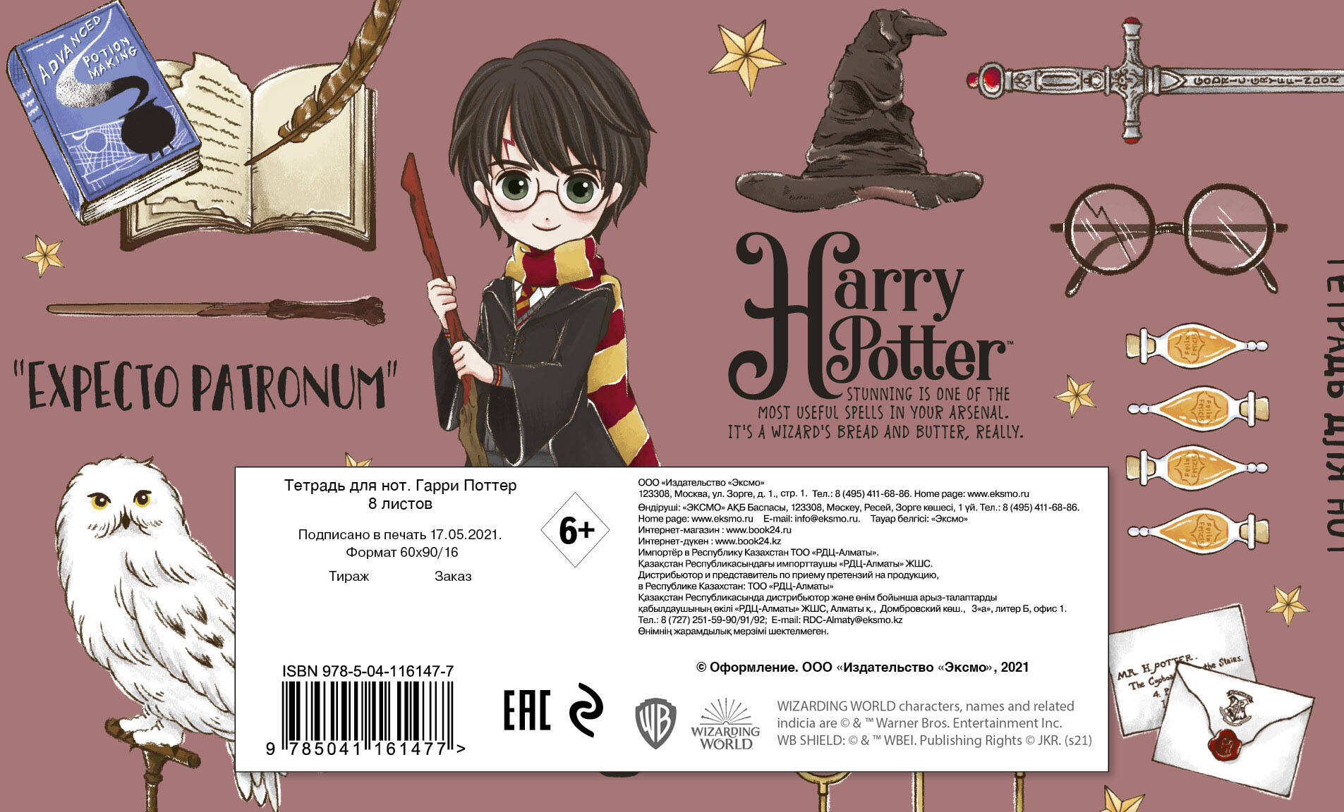 Аннотация: Тетрадь для нот. Гарри Поттер. Коллекция «Cute kids» (8 л., А5, горизонтальная, скрепка)