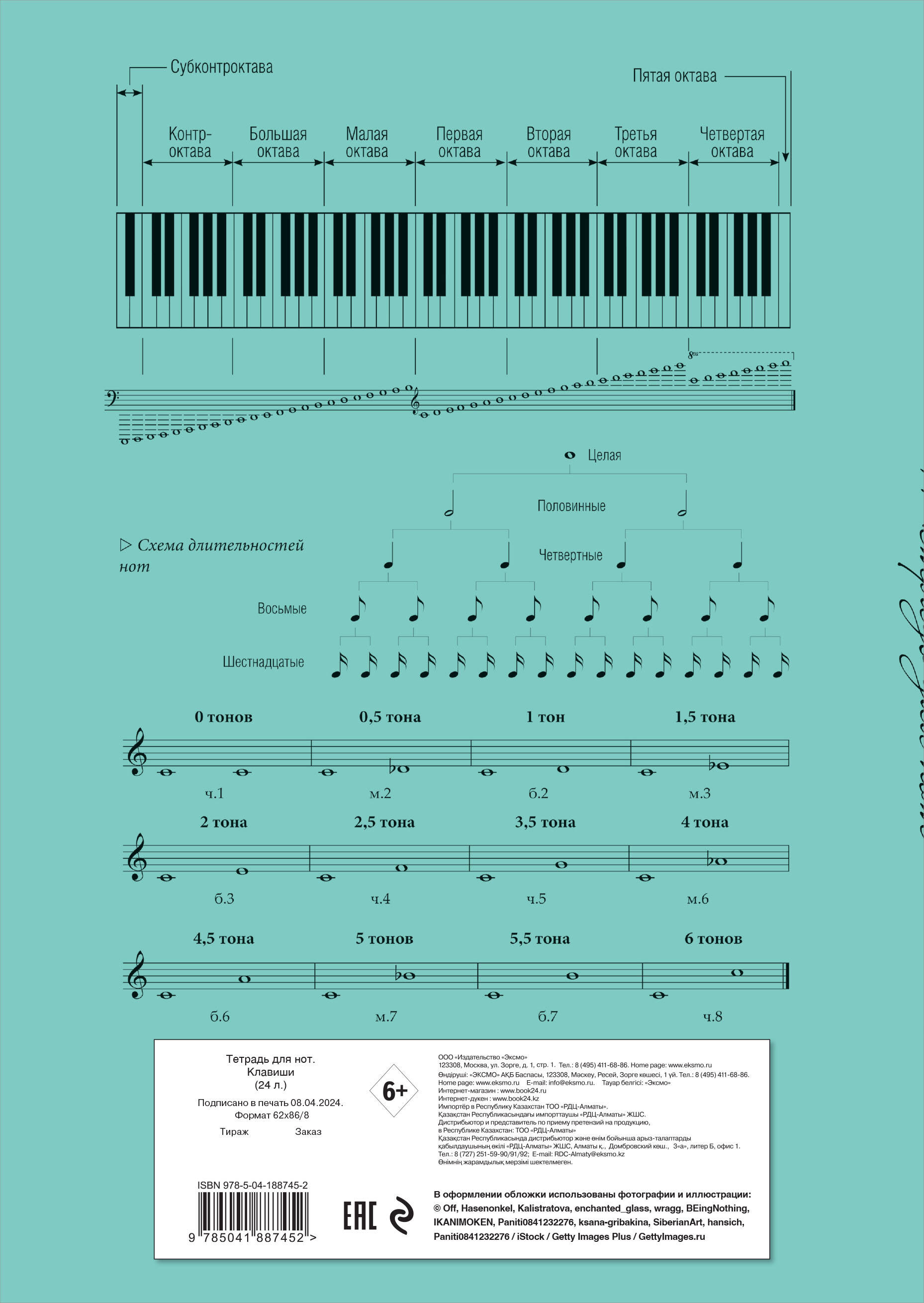 Аннотация: Тетрадь для нот. Клавиши (24 л., А4, вертикальная, скрепка, бирюзовая)