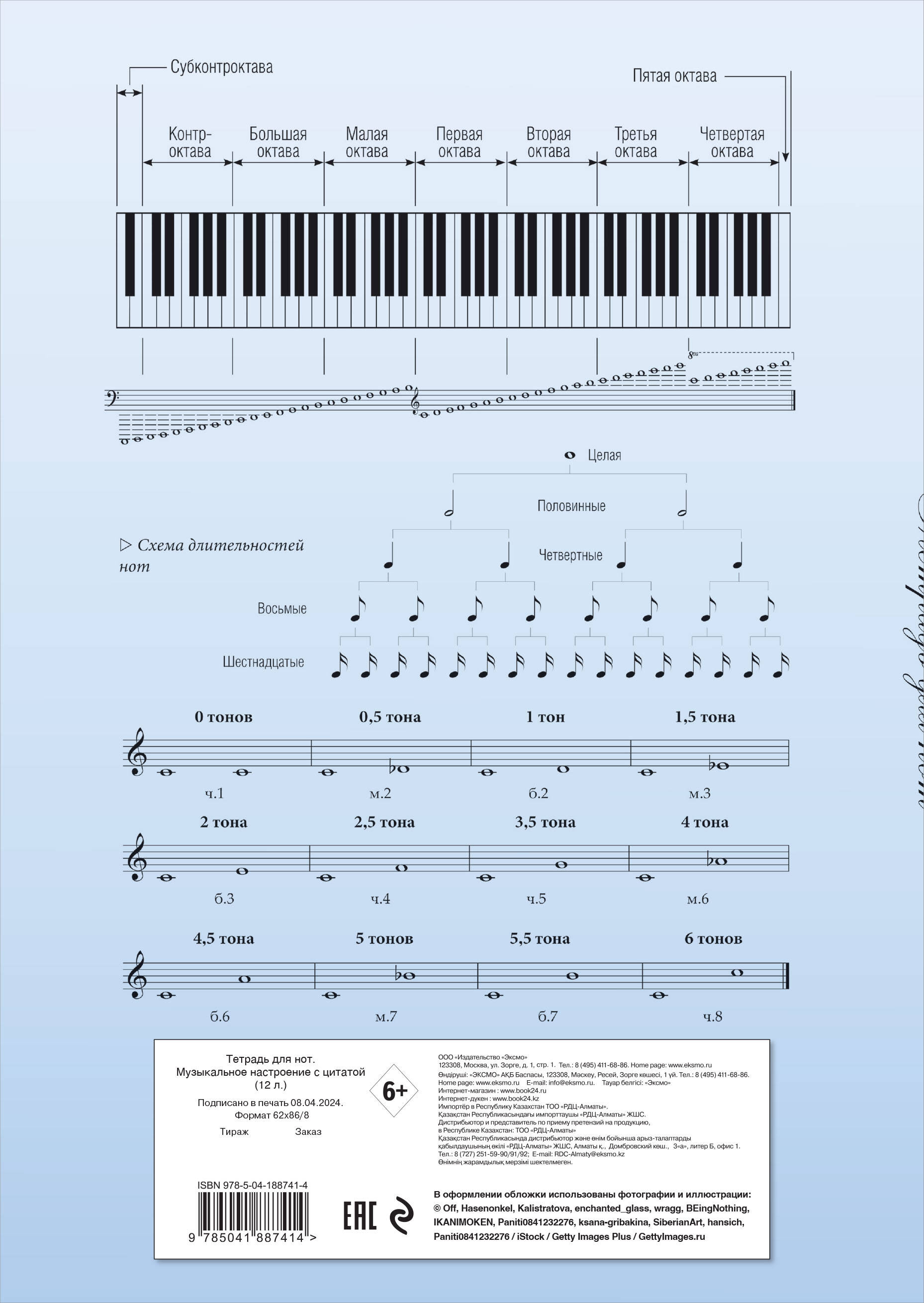 Аннотация: Тетрадь для нот. Музыкальное настроение, с цитатой (12 л., А4, вертикальная, скрепка)