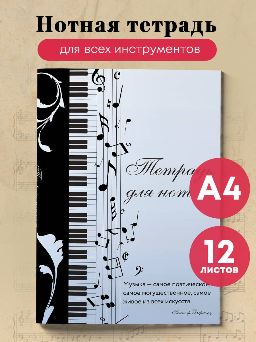 Тетрадь для нот. Музыкальное настроение, с цитатой (12 л., А4, вертикальная, скрепка)