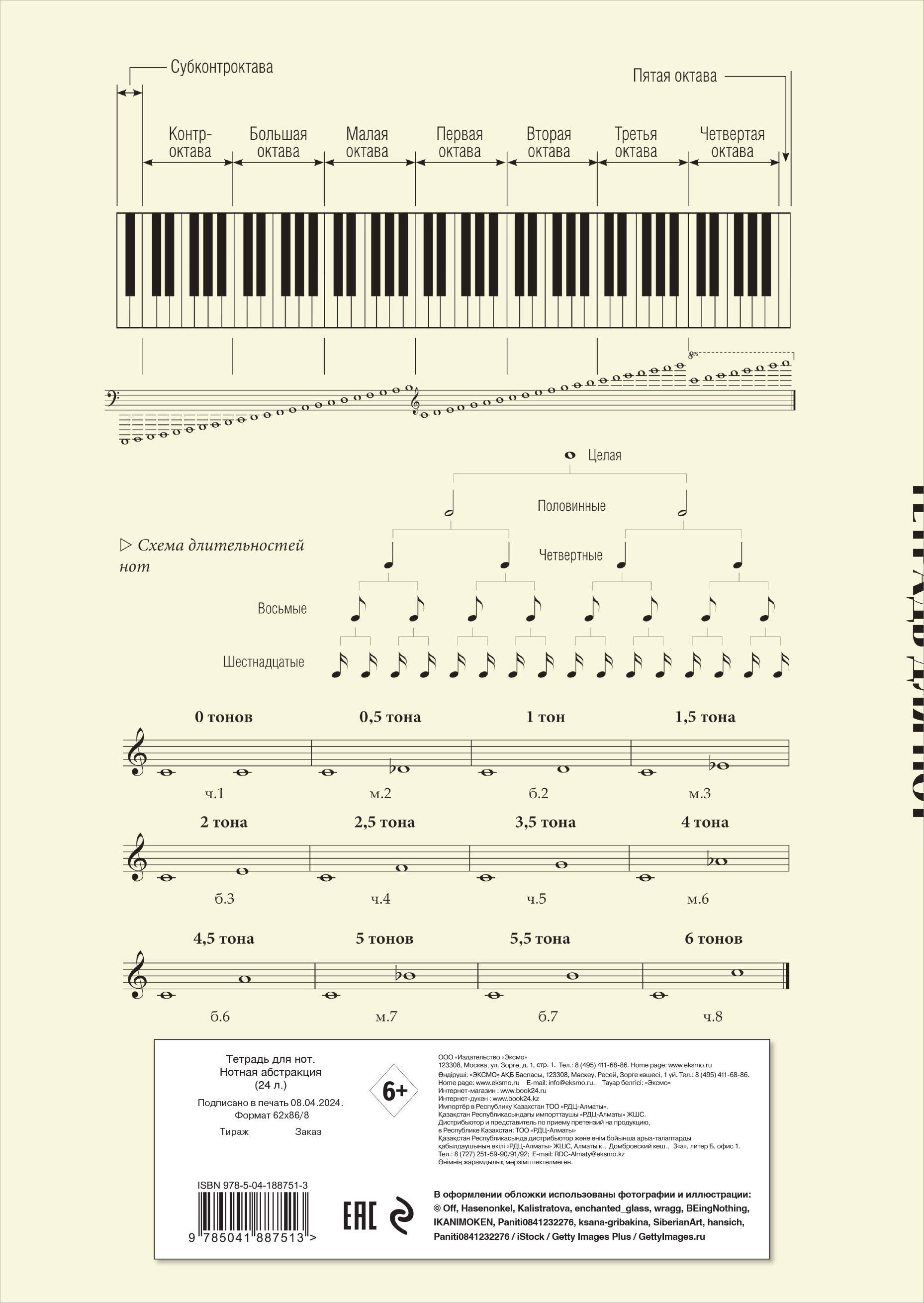 Эта тетрадь для нот станет помощником вашего ребенка в обучении и поможет быстрее освоить нотную грамоту, чтобы перейти к практике. Удобный формат, плотная белая бумага и дополнительные материалы на обороте обложки сделают процесс познания более продуктивным. А яркий дизайн и стильный блок с аккуратными иллюстрациями на полях делают эту тетрадь уникальной. Помогите своему ребенку проявить свою индивидуальность. Выбирайте лучшее! Технические параметры: Удобный формат А4. 48 страниц на офсетной бумаге. Стильный блок в с иллюстрациями и цитатами.| Издательство | ООО "Издательство "Эксмо" |