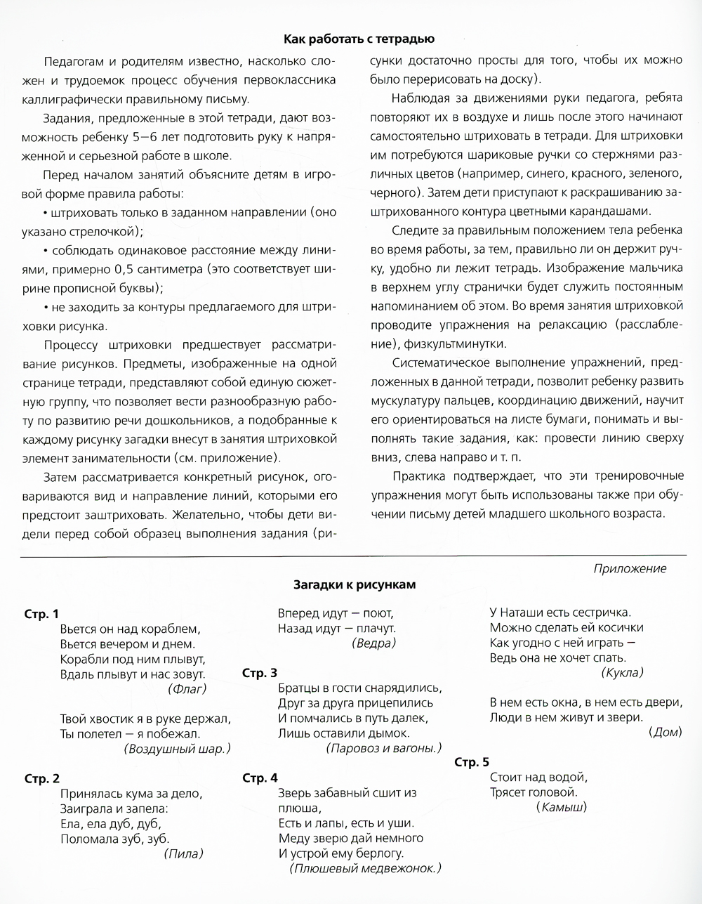 Штриховка является одним из методов подготовки дошкольников к обучению письму. Эти упражнения способствуют укреплению мышц руки, выработке умения действовать по заданным правилам, развитию таких важных для будущего школьника качеств, как внимание, аккуратность и способность доводить начатое дело до конца. Тетрадь предназначена для занятий с дошкольниками 5-6 лет в детском саду и дома. Она может быть полезна и первоклассникам в начальный период обучения письму.| Издательство | Детство-Пресс |