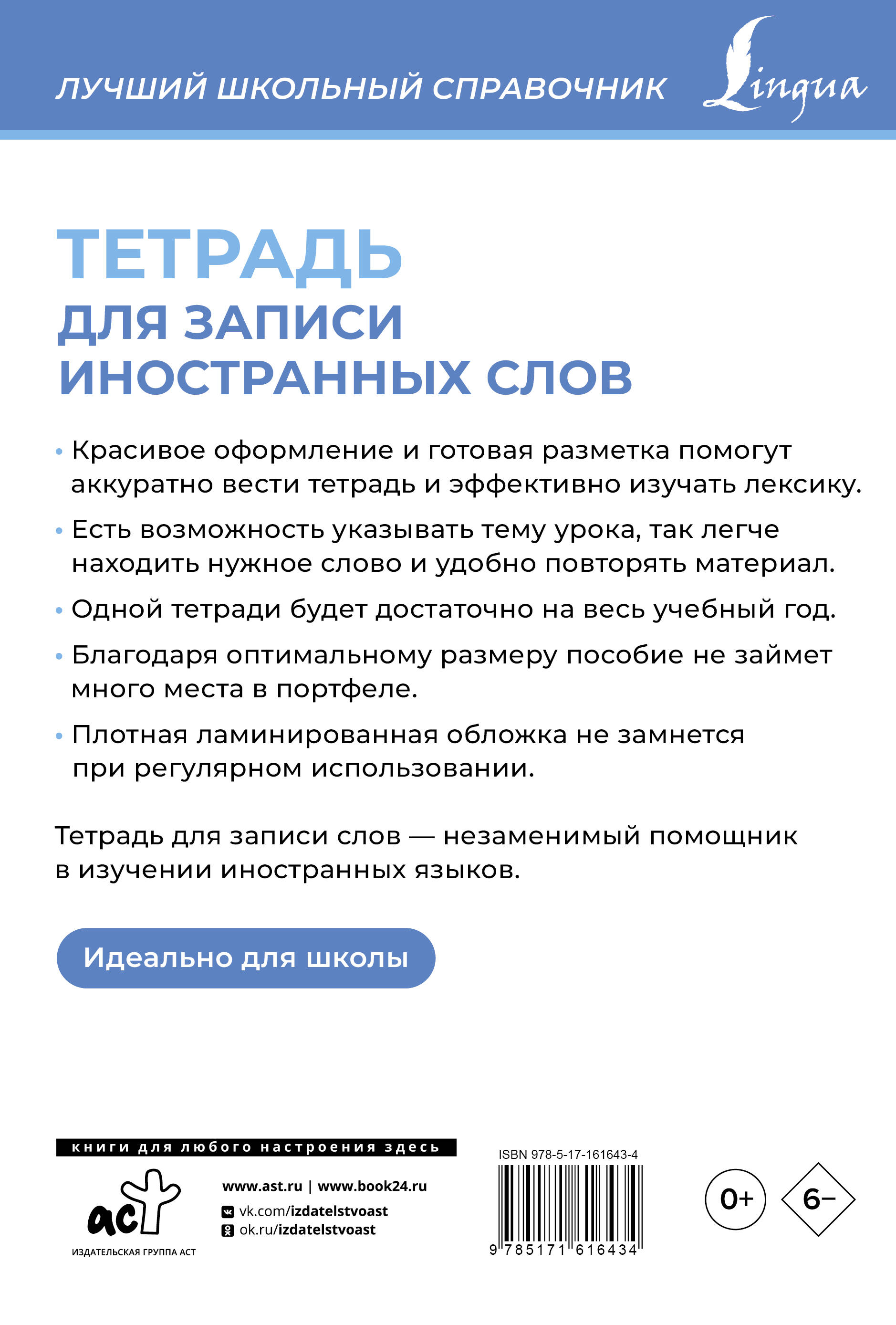 Аннотация: Тетрадь для записи иностранных слов (голубая)