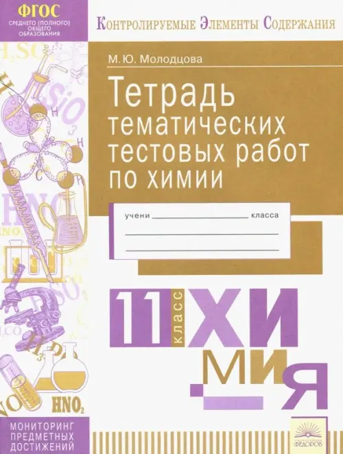 Тетрадь тематических тестовых работ предназначена для мониторинга предметных достижений одиннадцатиклассников по основным темам курса химии и позволяет целенаправленно готовить учащихся к различным процедурам внутренней и внешней оценки, в том числе к итоговым работам за год, ЕГЭ, ВПР. Тестовые задания разработаны на основе Кодификатора элементов содержания и требований к уровню подготовки выпускников образовательных организаций для проведения единого государственного экзамена по химии. Благодаря этому проверяется только тот учебный материал, который подлежит обязательному контролю при оценке качества образования.
