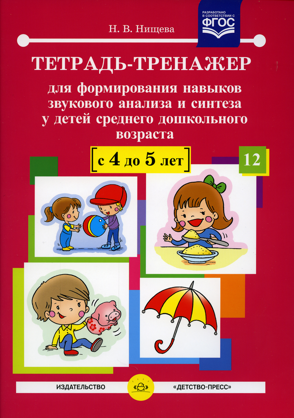 Тетрадь-тренажер №12 для формирования навыков звукового анализа и синтеза у детей среднего дошкольного возраста (с 4 до 5 лет)