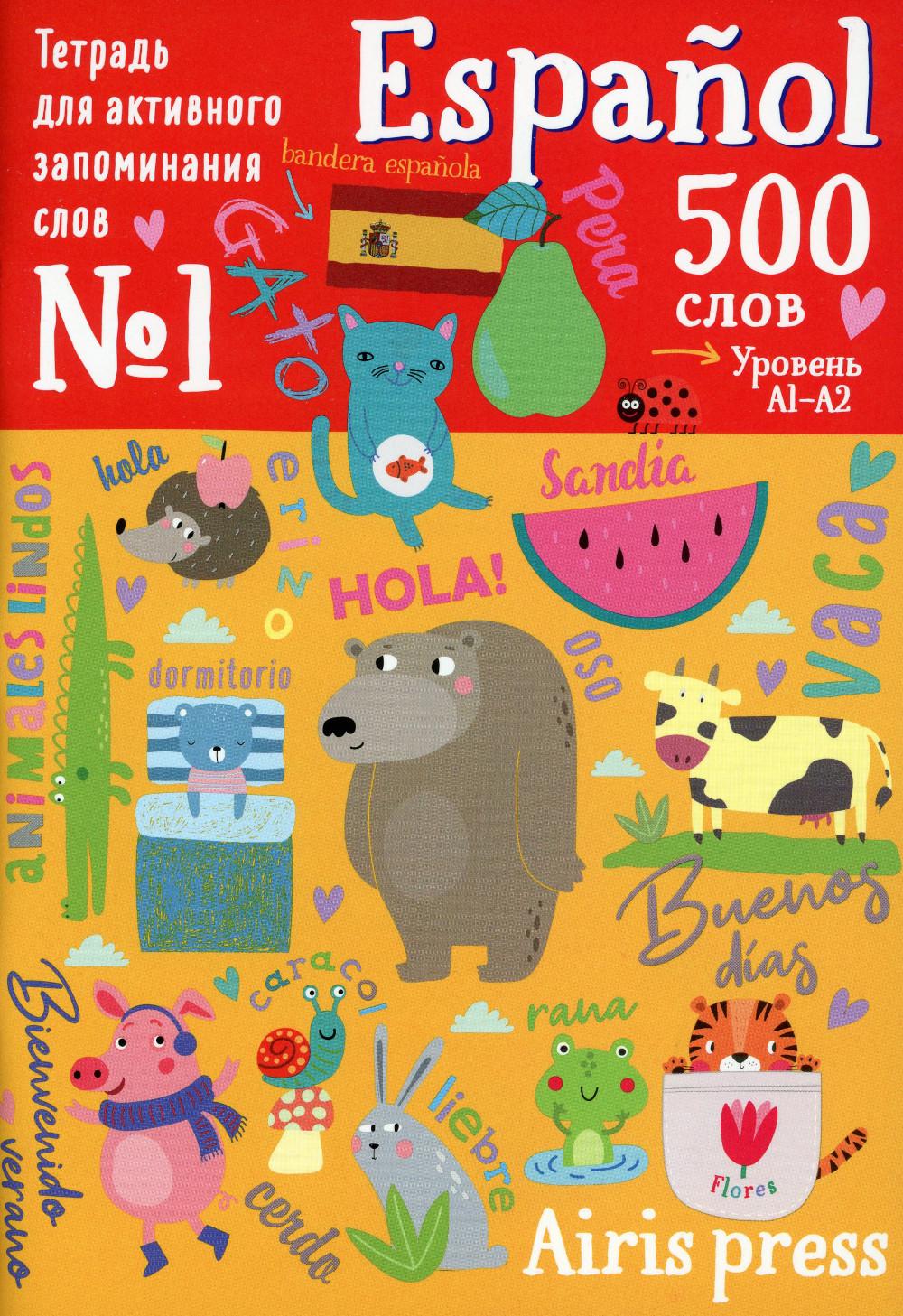 Тетрадь-тренажер для активного запоминания 500 испанских слов с наклейками. Уровень А1-А2