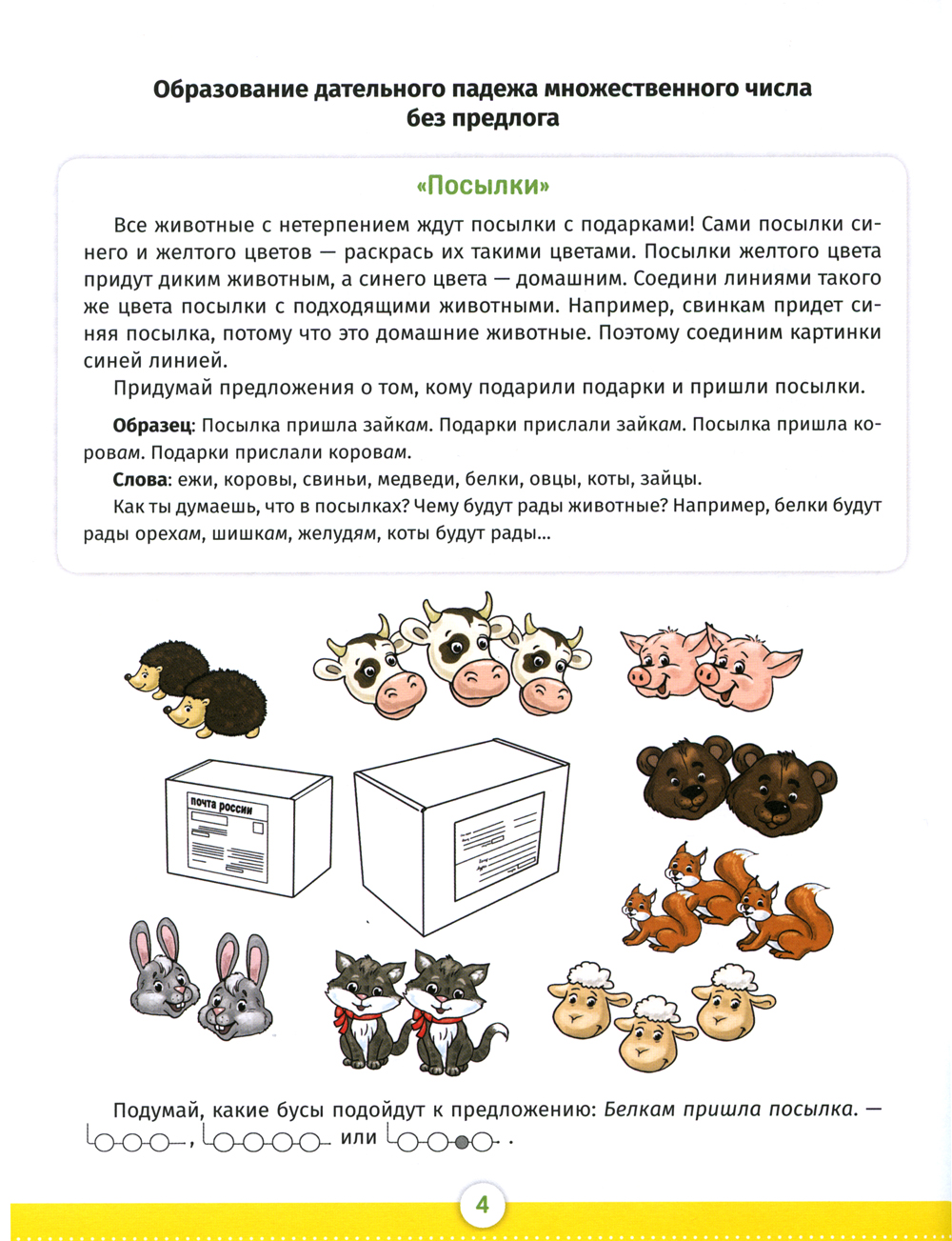 Пособие представляет собой сборник занимательных упражнений, заданий, направленных на формирование беспредложных и предложно-падежных конструкций у детей старшего дошкольного возраста с б до 7 лет. Помимо заданий для решения основной задачи - формирования и закрепления навыка словоизменения, пособие содержит упражнения на развитие навыков словообразования и задания для развития внимания, логического мышления, основанные на материале знакомых детям лексических тем. Также у ребенка будет возможность развить графические навыки: нарисовать, раскрасить, провести линии, обвести. Предложенный материал может использоваться педагогами на подгрупповых, фронтальных, индивидуальных занятиях, а родители получат возможность закрепить приобретенные ребенком на логопедических занятиях знания, умения в домашних условиях. Пособие адресовано учителям-логопедам, воспитателям, родителям.| Издательство | Детство-Пресс |