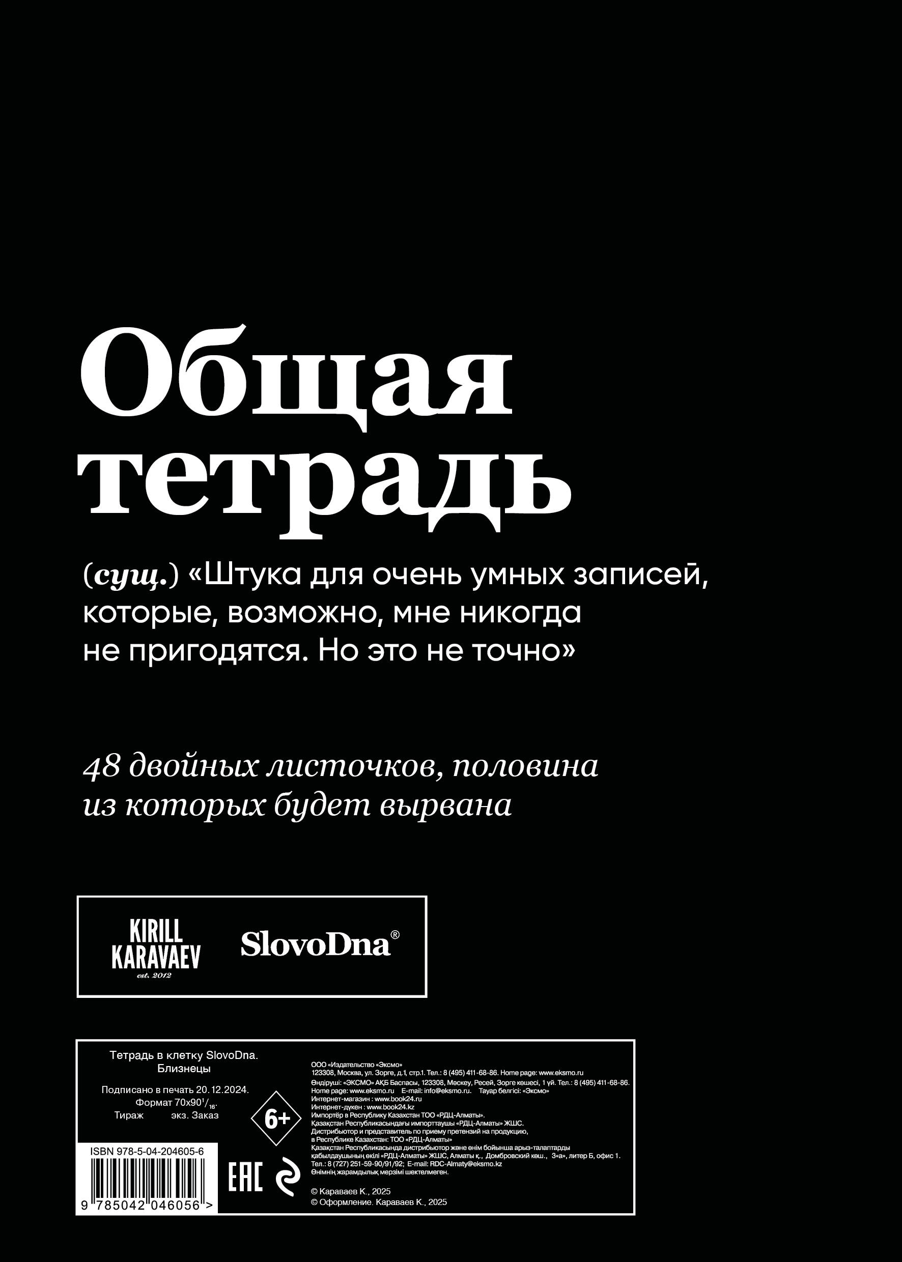 Аннотация: Тетрадь в клетку SlovoDna. Близнецы (А5, 48 л., мягкая обложка)