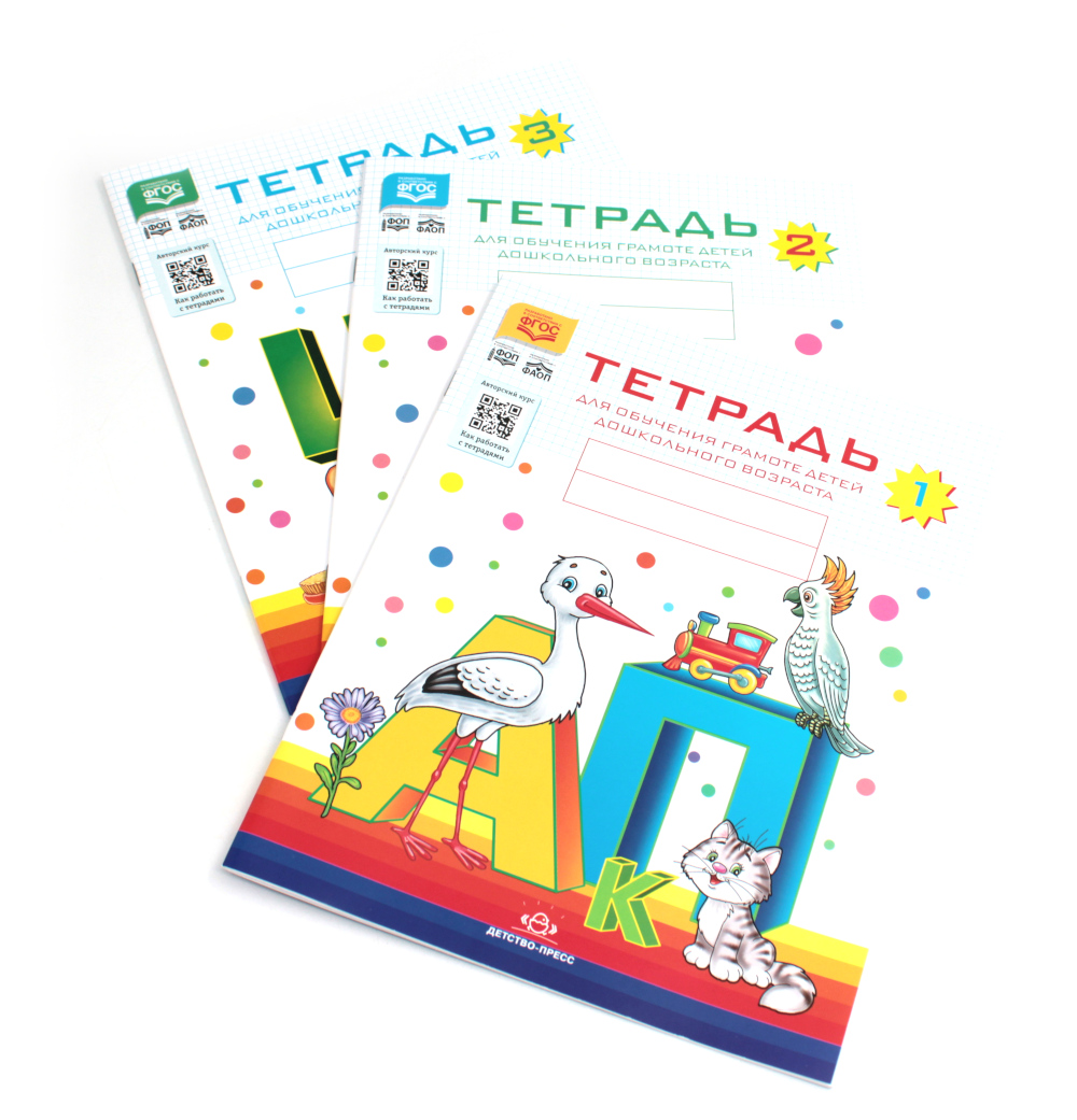Комплект из 3 тетрадей: Тетрадь для обучения грамоте детей дошкольного возраста № 1 ЦВЕТНАЯ. Тетрадь для обучения грамоте детей дошкольного возраста № 2 ЦВЕТНАЯ. Тетрадь для обучения грамоте детей дошкольного возраста № 3 ЦВЕТНАЯ. Тетради входят в методический комплект парциальной программы «Обучение грамоте детей дошкольного возраста» вместе с книгой «Мой букварь». Всего в комплект входят три тетради. Выполняя задания тетрадей под руководством взрослого, ребенок в игровой форме познакомится с буквами русского алфавита, научится читать и печатать слоги, слова, предложения, освоит начала звукового и слогового анализа и синтеза слов, что станет залогом успешного обучения в школе. В тетрадях содержится большое количество заданий для профилактики нарушения письменной речи (дисграфии, дислексии). Комплект тетрадей может использоваться для обучения грамоте детей дошкольного возраста уже с трех лет.| Издательство | Детство-Пресс |