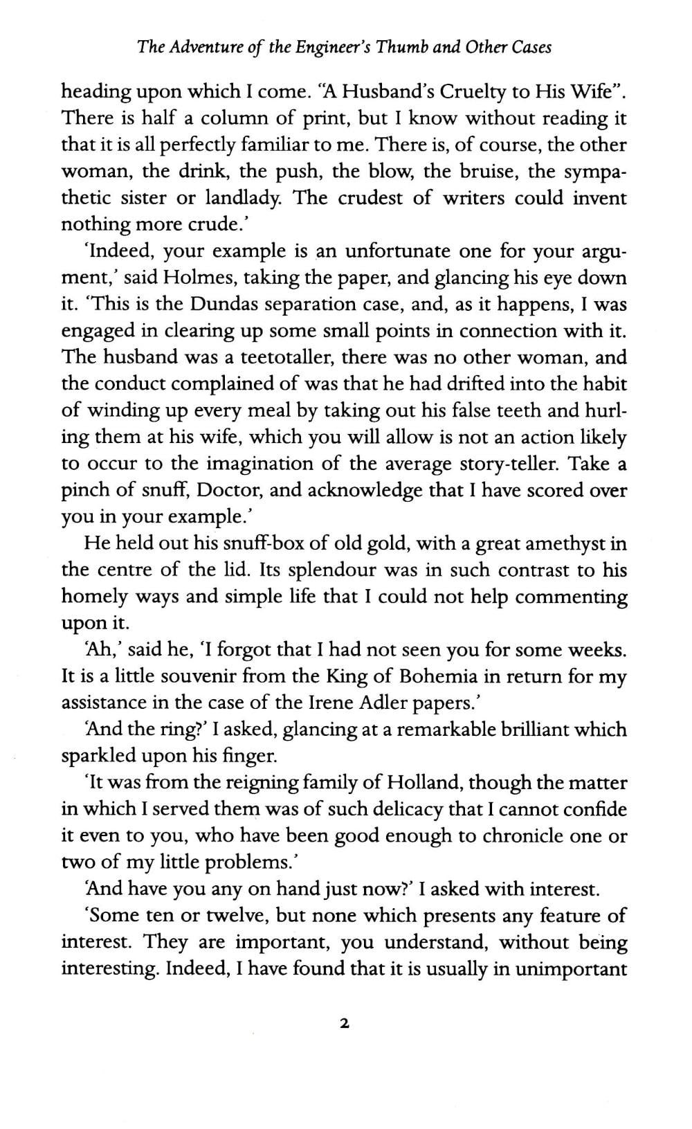 As usual with the Sherlock Holmes stories it is very hard to say which are the best - but there are many stories here which would get the vote - ranging from The Boscombe Valley Mystery to the wonderful Adventure of Silver Blaze, from the Adventure of the Norwood Builder to A Case of Identity, but above to the uniquely strange and macabre Adventure of the Engineer's Thumb.| Издательство | Penguin |