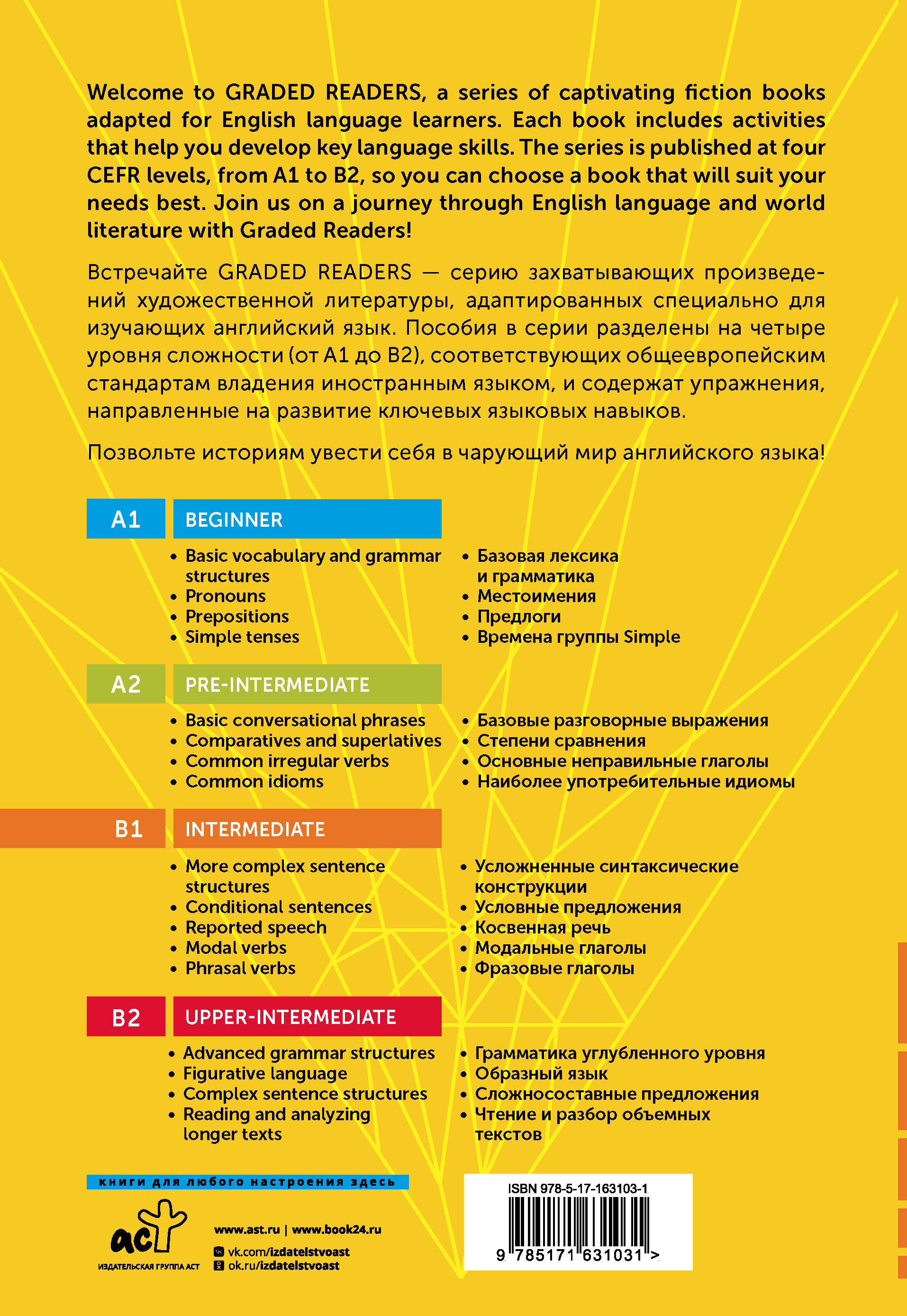 Отправляйтесь навстречу приключениям вместе с великим детективом Шерлоком Холмсом и его верным спутником доктором Ватсоном! В этой книге вас ждут три захватывающих истории, где логика, азарт и умение подмечать детали приведут к разгадке самых загадочных преступлений двух континентов. Узнайте тайну сбежавшего жениха через "Установление личности", спасите Джона Опеншоу от верной гибели, предсказанной "Пятью зернышками апельсина", и выясните, как внутри рождественского гуся оказался "Голубой карбункул". Все тексты рассказов адаптированы для уровня B1. Самые нужные слова с транскрипциями к ним вы найдете в словариках, расположенных после каждой главы. В конце книги даны упражнения на проверку понимания прочитанного, закрепление новых слов, работу с текстом и грамматику английского языка.| Издательство | Издательство "АСТ" |