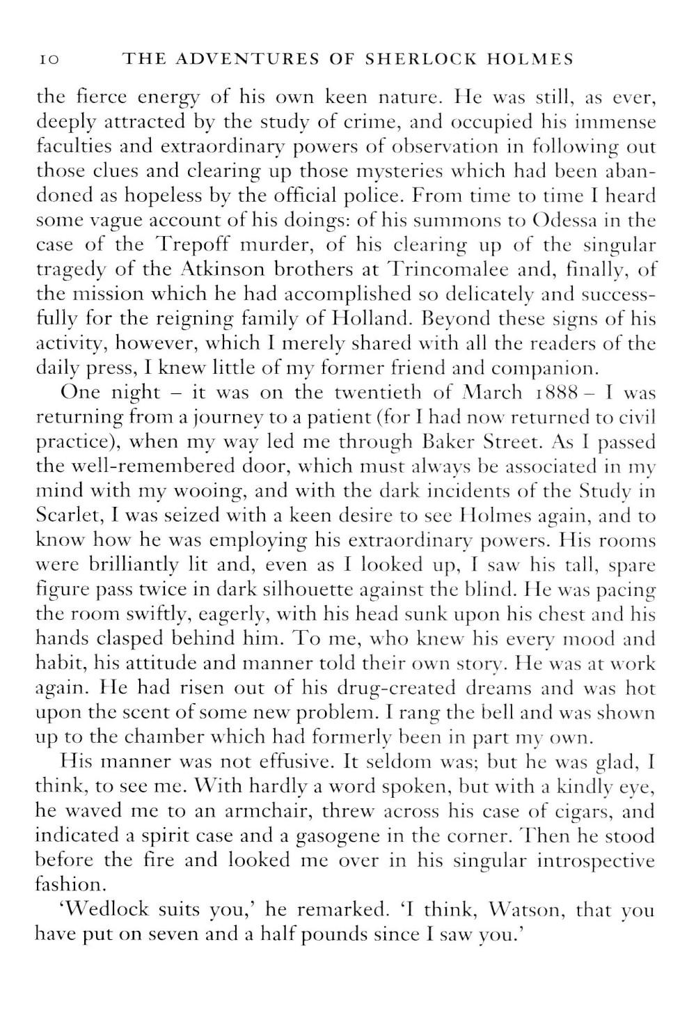 Having firmly established the characters of Sherlock Holmes and Dr Watson in the novels A Study in Scarlet and The Sign of the Four, Sir Arthur Conan Doyle was retained by The Strand Magazine to contribute a series of twelve short stories, which began with A Scandal in Bohemia in 1891 and were published monthly for the next year. The stories, in which the master sleuth receives a stream of clients presenting him with baffling and bizarre mysteries in his consulting room at 221B Baker Street, were instantly popular and by the time of the publication of the final story, The Copper Beeches, they had become the mainstay of the magazine. They included such classic tales as The Five Orange Pips and The Adventure of the Speckled Band, and were gathered together in a collection known as The Adventures of Sherlock Holmes, representing some of the finest detective stories ever written.| Издательство | Wordsworth |
