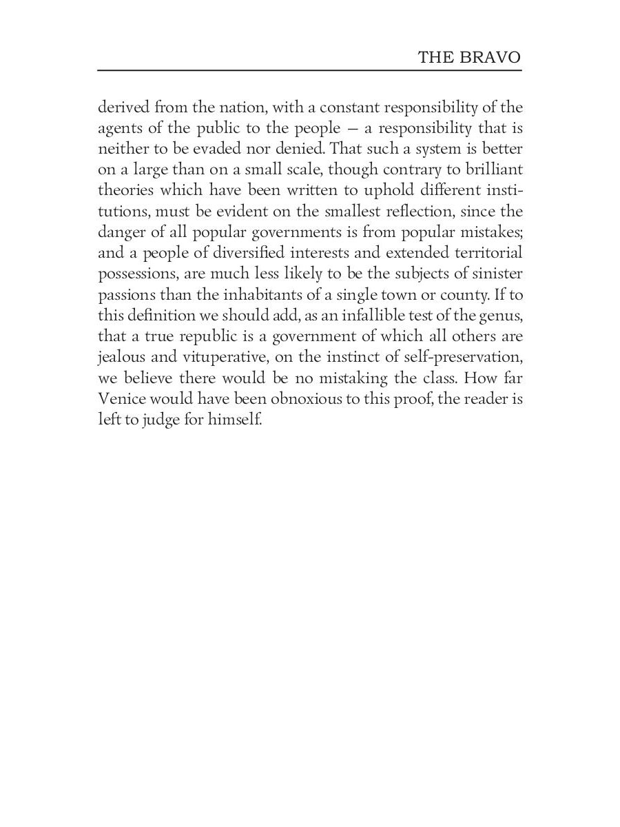 James Fenimore Cooper was a prolific and popular American writer of the first half of the 19th century. His historical romances of frontier and Indian life in the early American days created a unique form of American literature. The Bravo was inspired by Cooper's trip to Europe where he traveled through much of Italy. This novel is set in Venice and it is the first of Cooper's three European novels. The book largely focuses on political themes including the tension between the social elite and other classes.