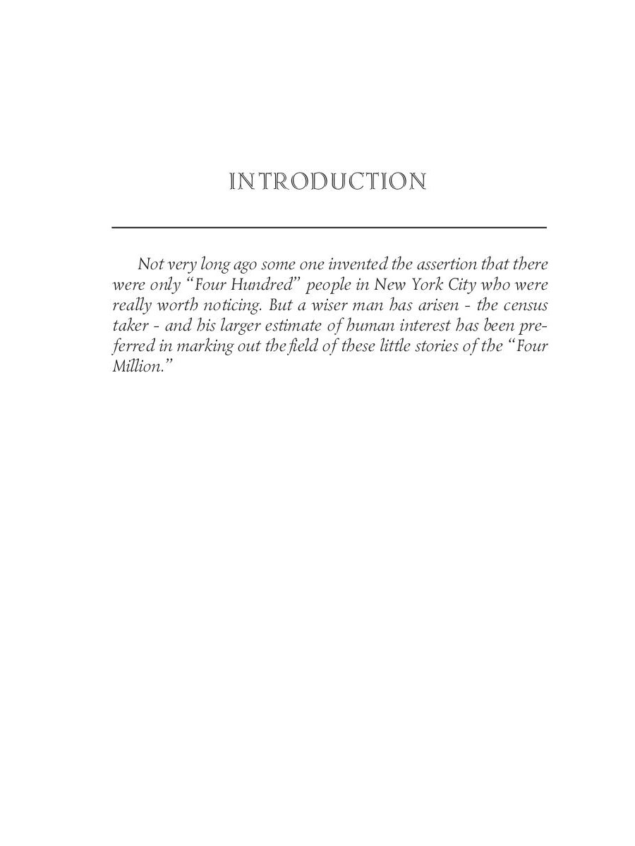 William Sydney Porter, known by his pen name O. Henry, was an American short story writer. His wit and plot twists were adored by his readers, but often panned by the critics. The Four Million is his second collection of short stories published in 1906. The title refers to the population of New York City at that time; it is where all of the stories in this volume are set.