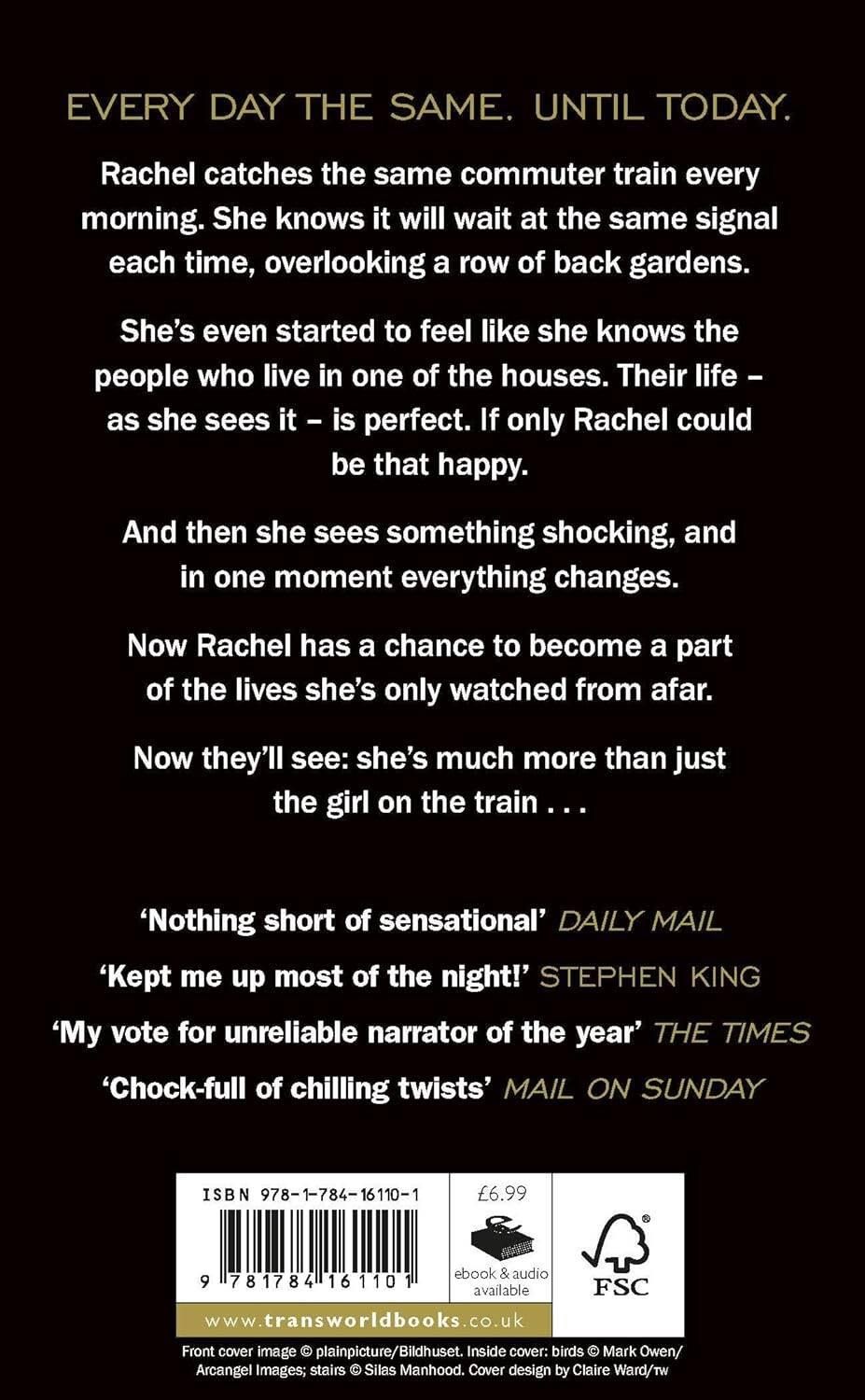 THE RUNAWAY SUNDAY TIMES NO.1 BESTSELLER AND THRILLER OF THE YEAR, NOW A MAJOR FILM STARRING EMILY BLUNT 'Really great suspense novel. Kept me up most of the night. The alcoholic narrator is dead perfect' STEPHEN KING Rachel catches the same commuter train every morning. She knows it will wait at the same signal each time, overlooking a row of back gardens. She's even started to feel like she knows the people who live in one of the houses. 'Jess and Jason', she calls them. Their life - as she sees it - is perfect. If only Rachel could be that happy. And then she sees something shocking. It's only a minute until the train moves on, but it's enough. Now everything's changed. Now Rachel has a chance to become a part of the lives she's only watched from afar. Now they'll see; she's much more than just the girl on the train… Бестселлер Сенди Таймс и триллер года номер 1, а теперь известный фильм с Эмили Блант "Действительно отличный саспенс-роман. Не давал мне спать большую часть ночи. Алкоголик-рассказчик просто идеален". Стивен Кинг Рейчел каждое утро садится на один и тот же пригородный поезд. Она знает, что каждый раз он будет ждать одного и того же сигнала, глядя на ряд задних садов. Ей даже стало казаться, что она знает людей, живущих в одном из домов. "Джесс и Джейсон", - называет она их. Их жизнь, как она ее видит, идеальна. Если бы только Рэйчел могла быть такой счастливой. И тут она видит что-то шокирующее. Это всего минута, пока движется поезд, но этого достаточно. Теперь все изменилось. Теперь у Рэйчел есть шанс стать частью жизни, за которой она наблюдала только издалека. Теперь они увидят: она гораздо больше, чем просто девушка в поезде…