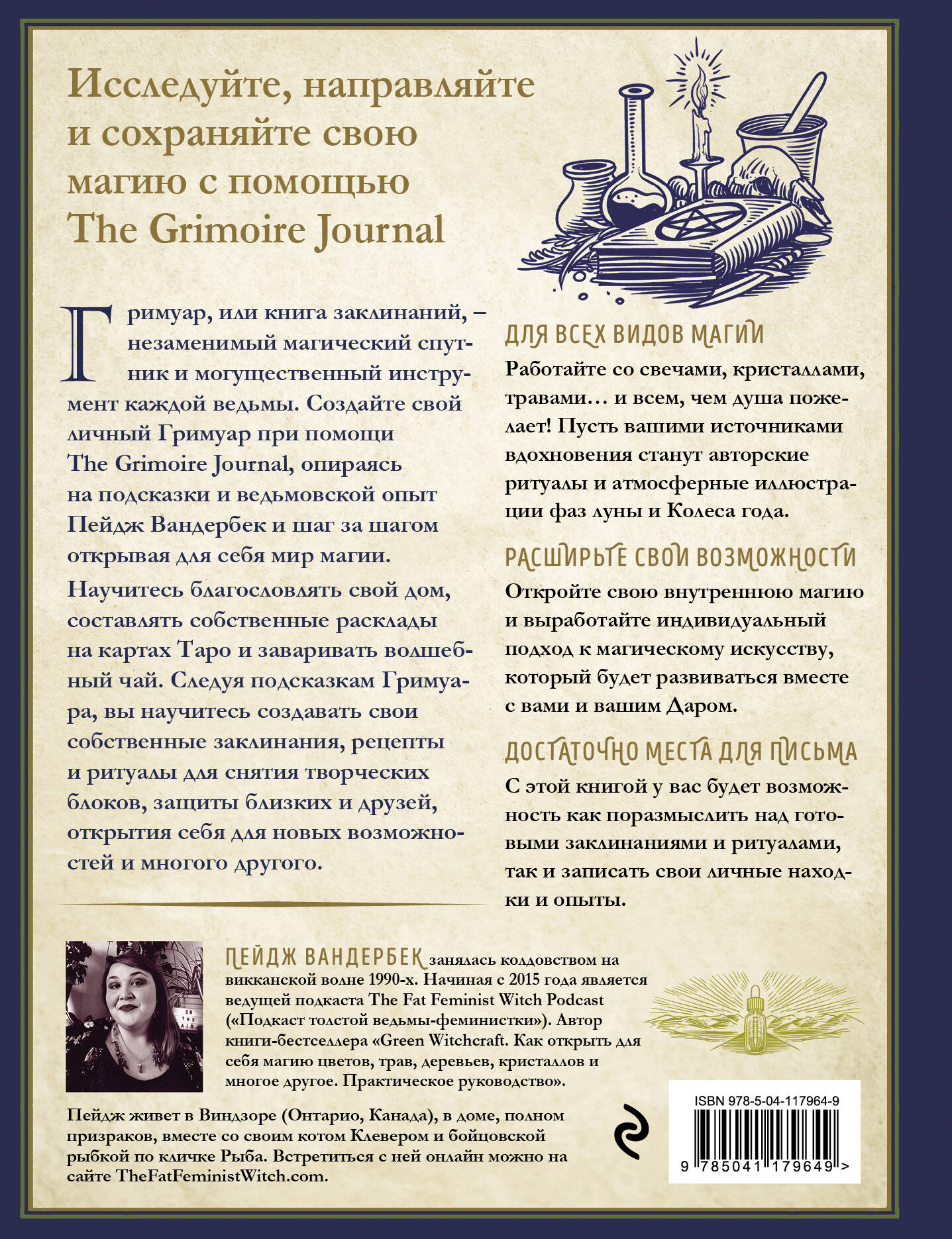 Гримуар, или книга заклинаний - незаменимый магический спутник и могущественный инструмент каждой ведьмы. Создайте свой личный Гримуар при помощи The Grimoire Journal, опираясь на подсказки и ведьмовской опыт Пейдж Вандербек, и шаг за шагом открывайте для себя мир магии. Следуя подсказкам Гримуара, вы научитесь создавать свои собственные заклинания, рецепты и ритуалы для снятия творческих блоков, защиты близких и друзей, привлечения новых возможностей и многого другого. The Grimoire Journal: • Подходит для всех видов магии. Работайте со свечами, кристаллами, травами и всем, чем душа пожелает! Пусть вашими источниками вдохновения станут авторские ритуалы и атмосферные иллюстрации фаз луны и Колеса года. • Расширит ваши возможности. Откройте свою внутреннюю магию и выработайте индивидуальный подход к магическому искусству, который будет развиваться вместе с вами и вашим Даром. • Содержит достаточно места для письма. С этой книгой у вас будет возможность как поразмыслить над готовыми заклинаниями и ритуалами, так и записать свои личные находки и опыты. ПЕЙДЖ ВАНДЕРБЕК занялась колдовством на викканской волне 1990-х. Начиная с 2015 года является ведущей подкаста The Fat Feminist Witch Podcast («Подкаст толстой ведьмы-феминистки»). Автор книги-бестселлера «Green Witchcraft. Как открыть для себя магию цветов, трав, деревьев, кристаллов и многое другое. Практическое руководство».| Издательство | ООО "Издательство "Эксмо" |