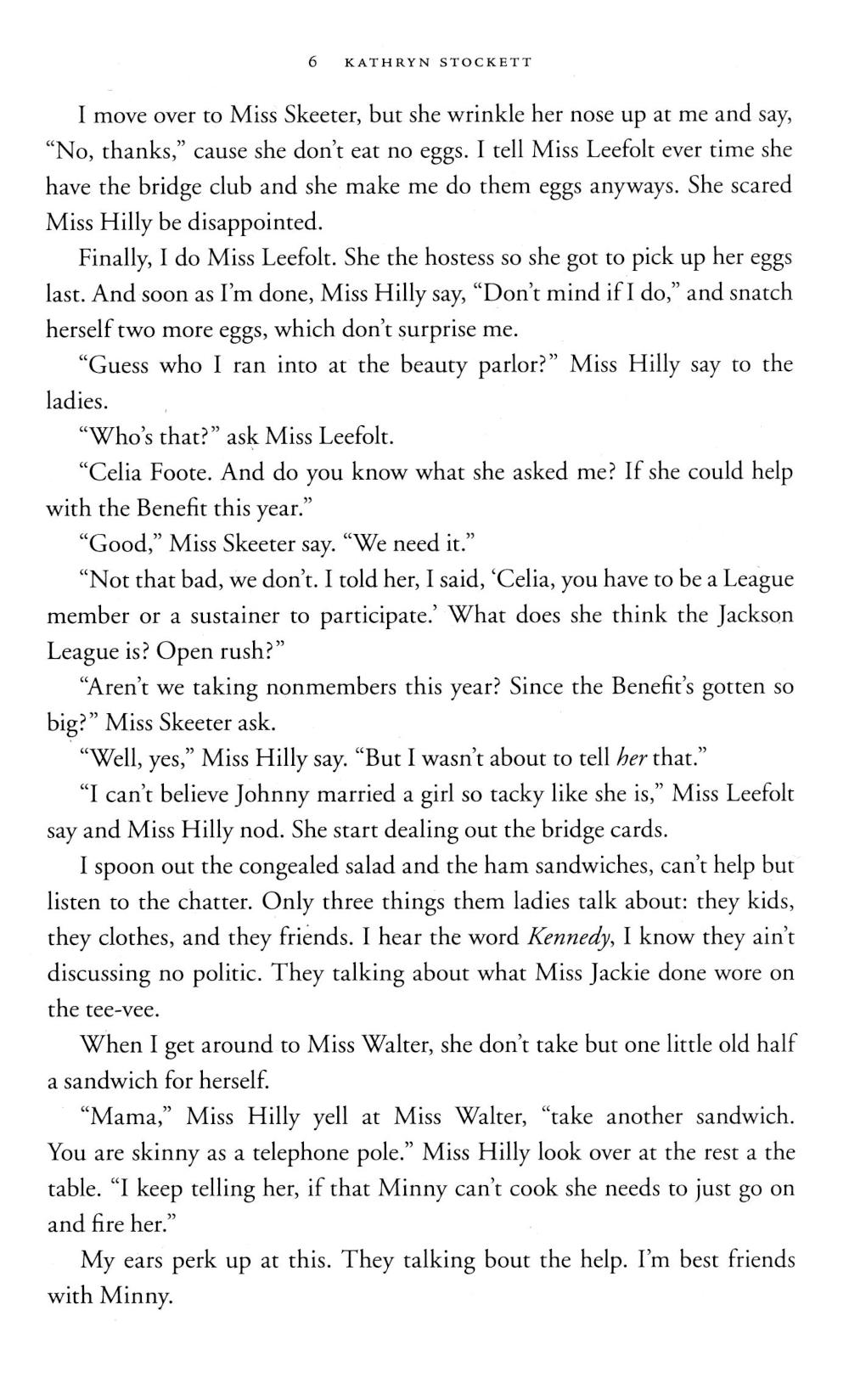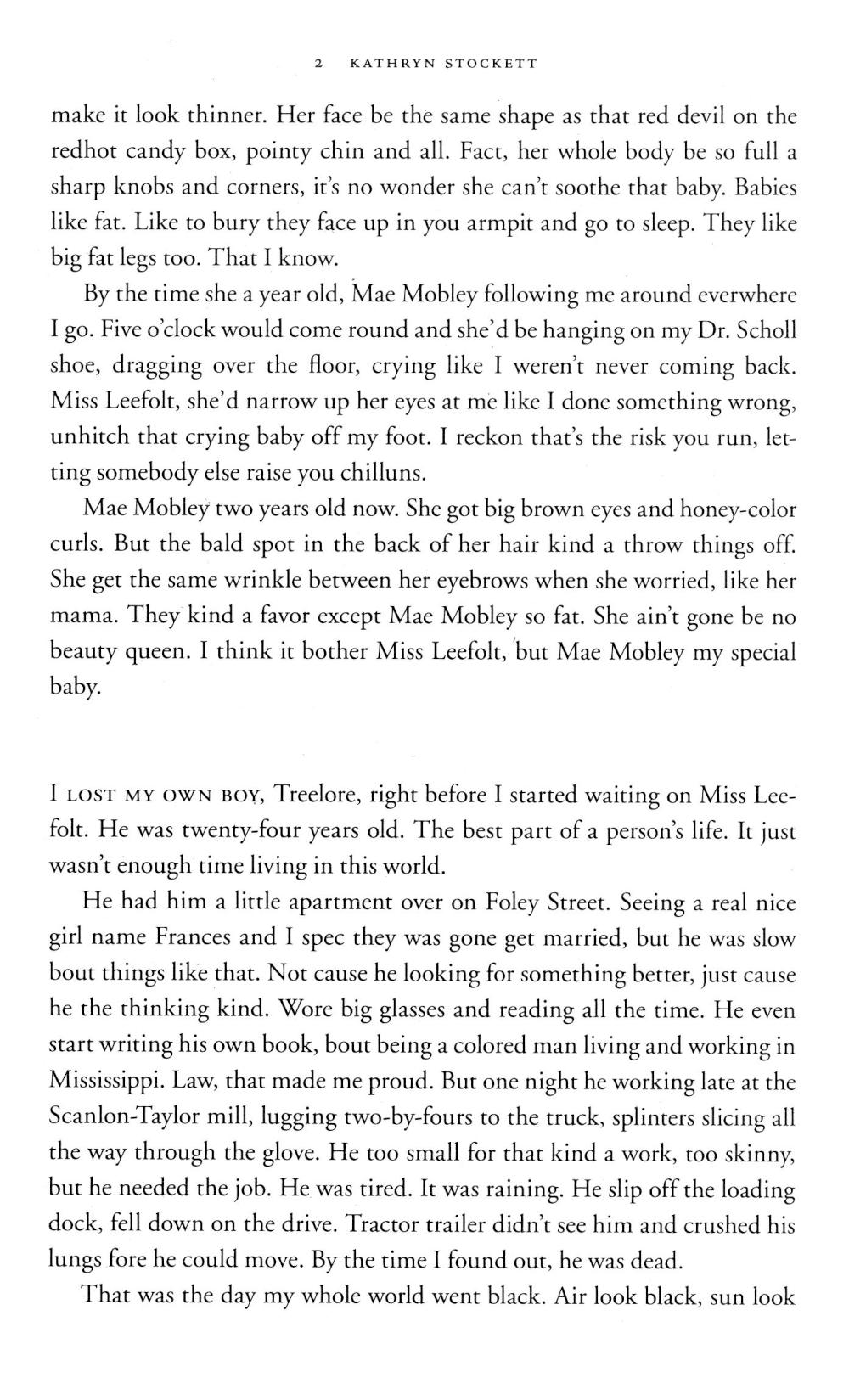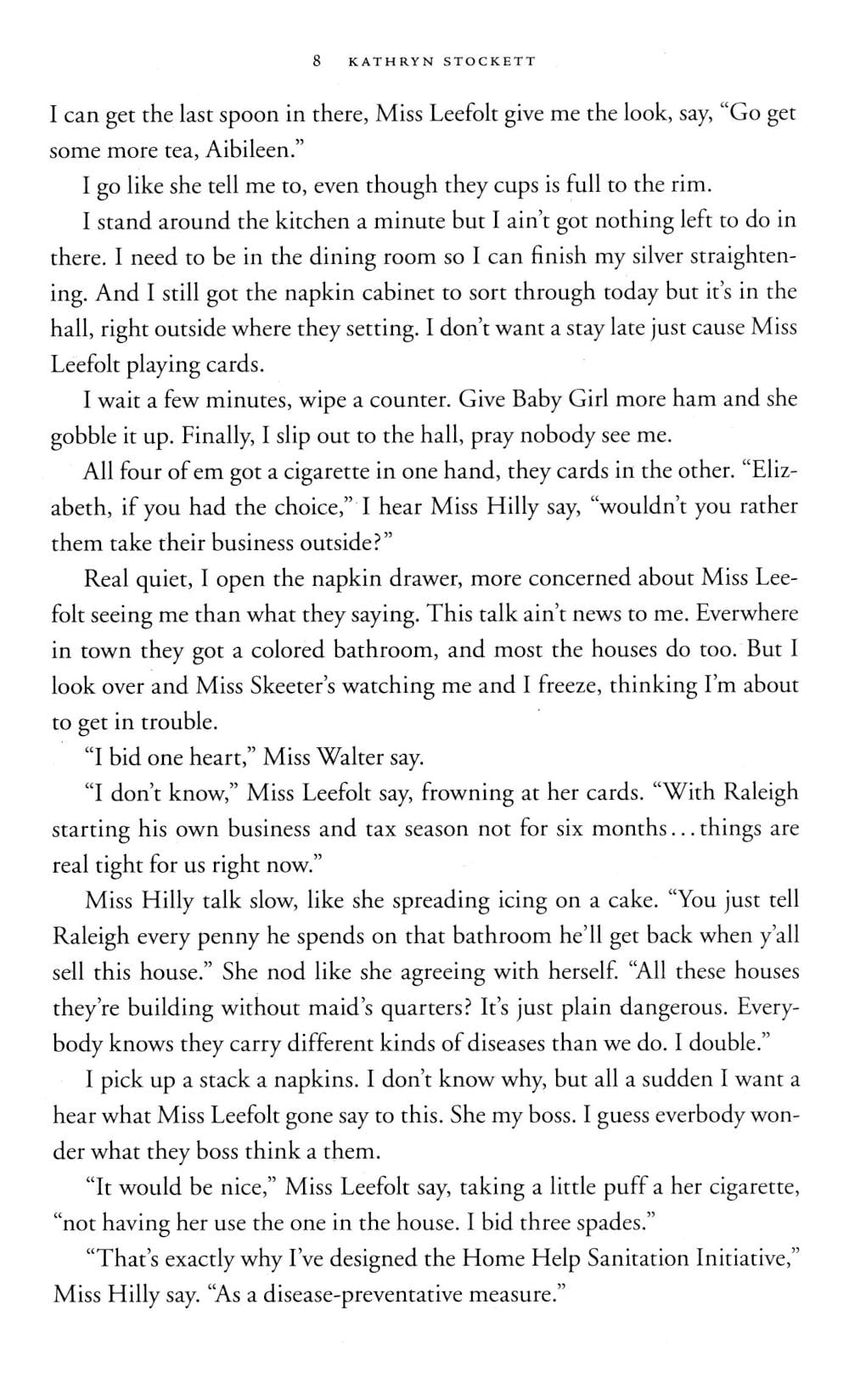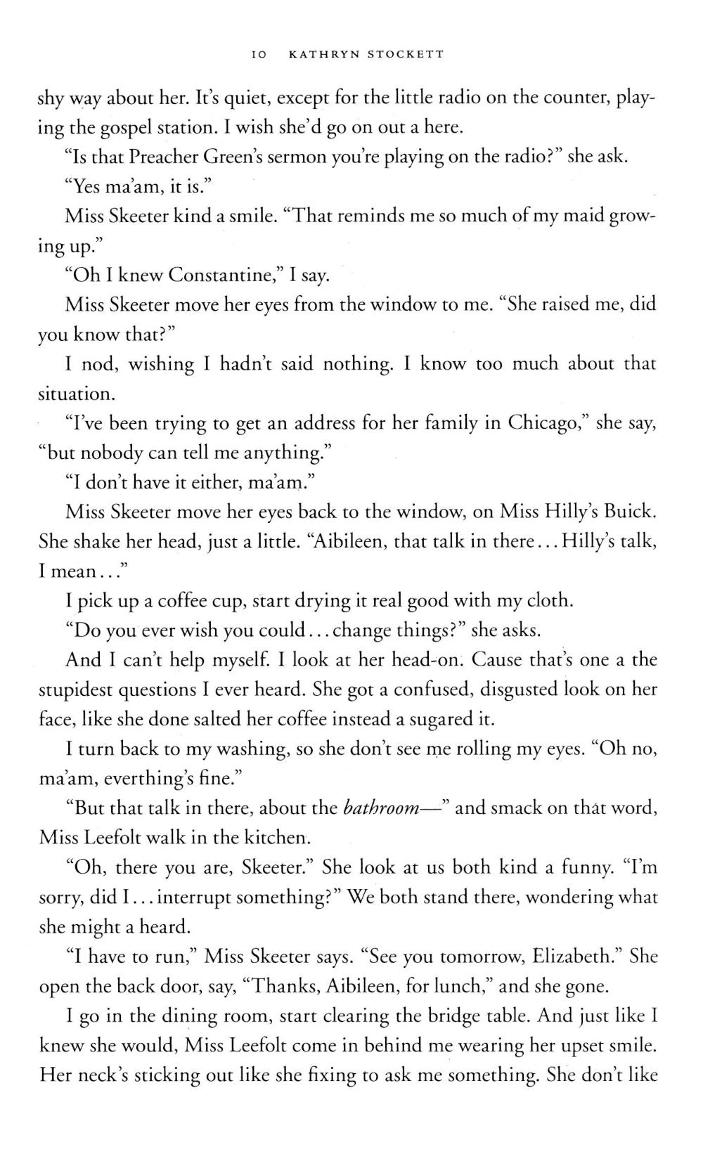 Enter a vanished and unjust world: Jackson, Mississippi, 1962. Where black maids raise white children, but aren't trusted not to steal the silver . . .There's Aibileen, raising her seventeenth white child and nursing the hurt caused by her own son's tragic death; Minny, whose cooking is nearly as sassy as her tongue; and white Miss Skeeter, home from College, who wants to know why her beloved maid has disappeared.Skeeter, Aibileen and Minny. No one would believe they'd be friends; fewer still would tolerate it. But as each woman finds the courage to cross boundaries, they come to depend and rely upon one another. Each is in a search of a truth. And together they have an extraordinary story to tell.| Издательство | Penguin Books Ltd |