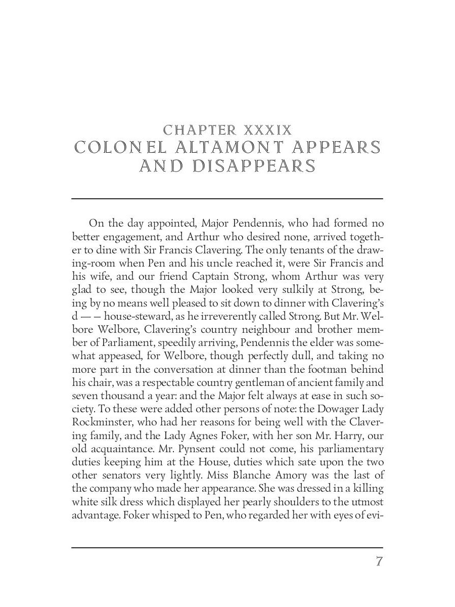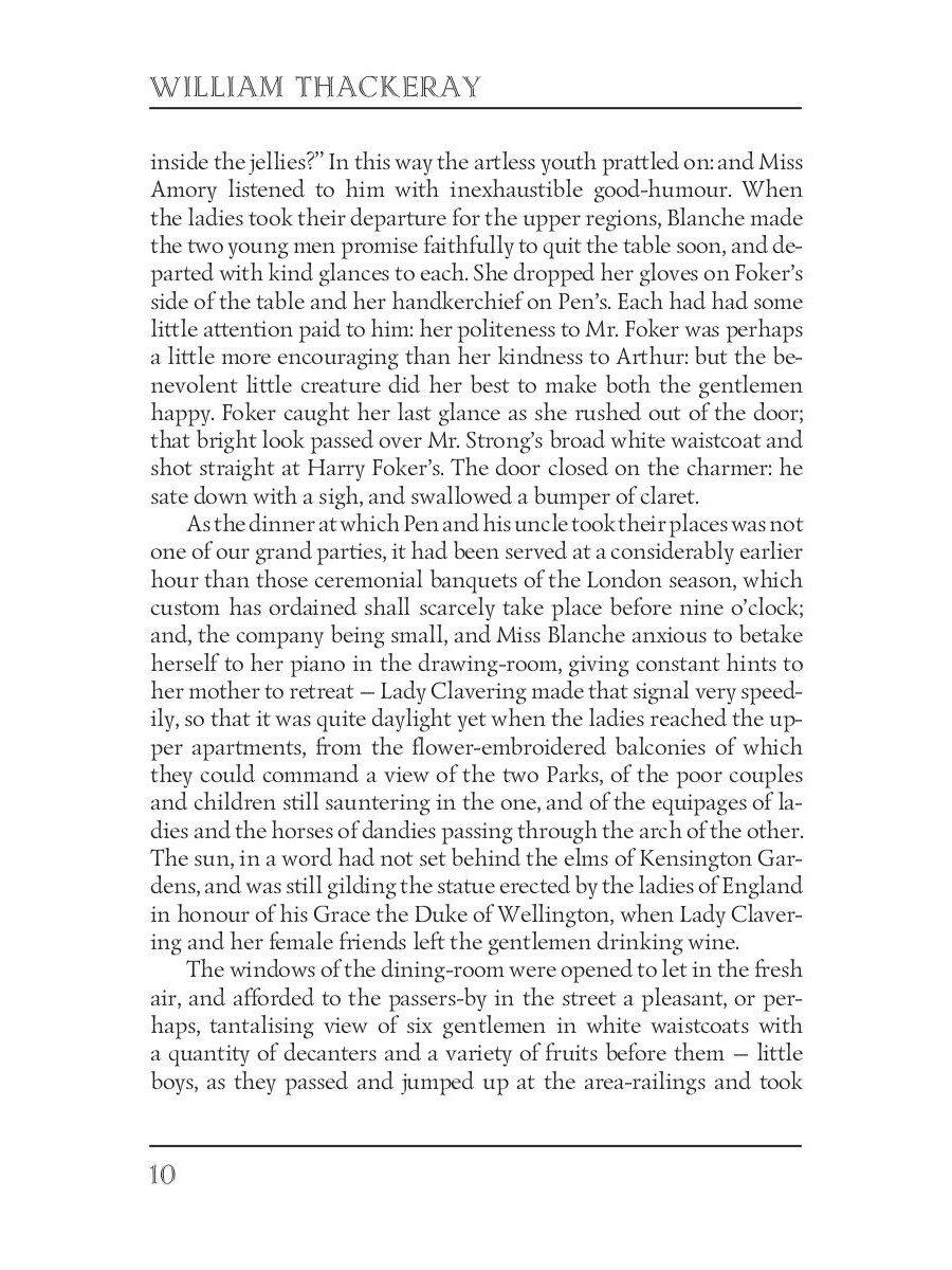 William Makepeace Thackeray (1811-1863) was a British author and novelist mostly known for his satirical works such as "Vanity Fair" that showed an ironic representation of the British society of those times. "The History of Pendennis" is a novel set in nineteenth-century England, mostly in London. The book tells the story of a young gentleman Arthur Pendennis from a countryside, who travels to London to find his place in society. In line with other Thackeray's works, the novel is a satiric picture of the English aristocratic society, which includes all sorts of snobbish and sometimes detestable characters.