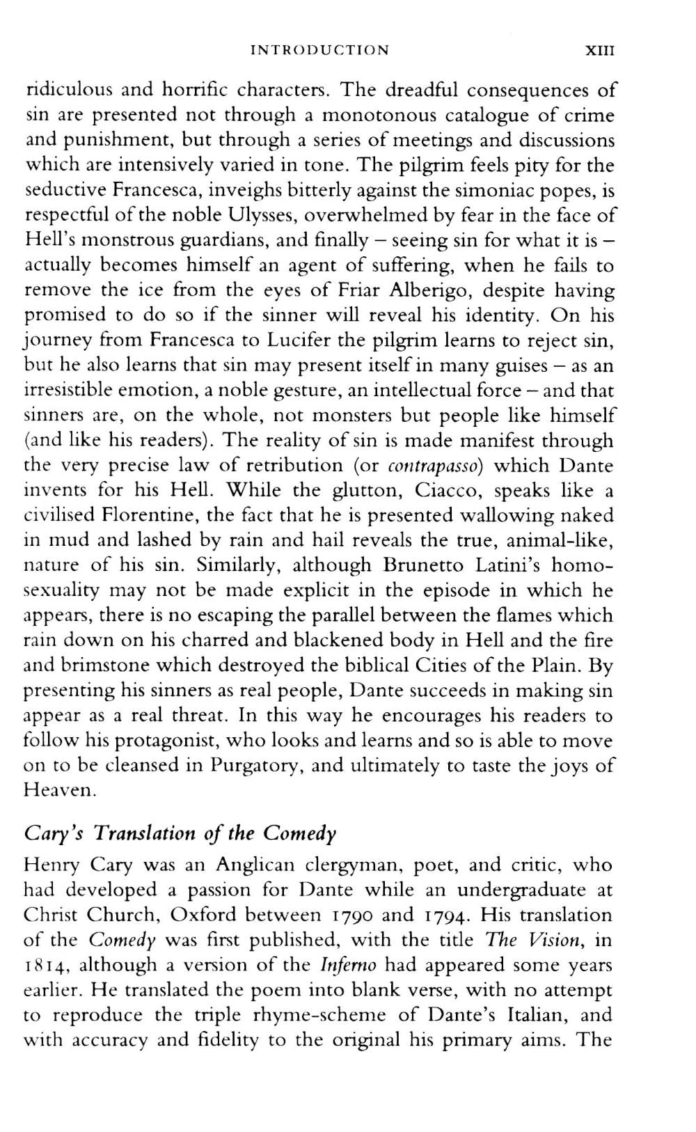 In the Inferno, Dante's protagonist - and his reader - is presented with a graphic vision of the dreadful consequences of sin, and encounters an all-too-human array of noble, grotesque, beguiling, ridiculous and horrific characters.