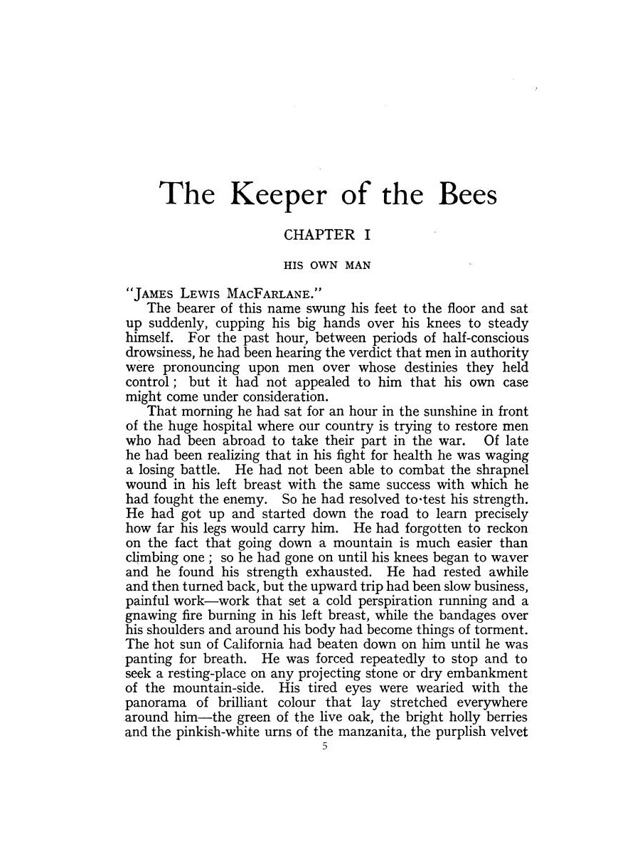 «Пчеловод» - одно из самых известных и успешно экранизированных произведений, повествующее о судьбе израненного ветерана войны Джеймса Льюиса Макфарлана. Волею судеб он становится наследником пасеки и пытается обрести мирную и тихую жизнь заново...