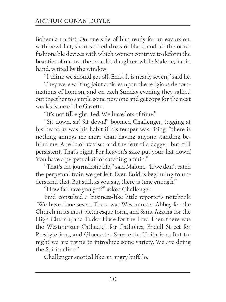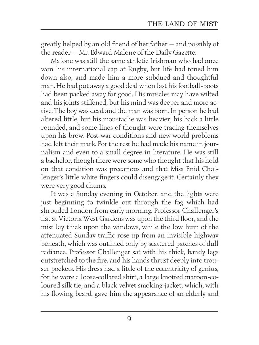 Arthur Conan Doyle was a British writer best known for his detective fiction featuring the character Sherlock Holmes. His works also include fantasy and science fiction, as well as plays, romances, non-fiction and historical novels. The Lost World tells the story of a journalist Edward Malone who decides to join the dangerous but exciting expedition to a world populated by dinosaurs. The Land of Mist is a novel about Professor Challenger, heavily inspired by the ideas of Spiritualism. This book contains a brilliant story about exploring the world of supernatural through the series of fascinating seances.