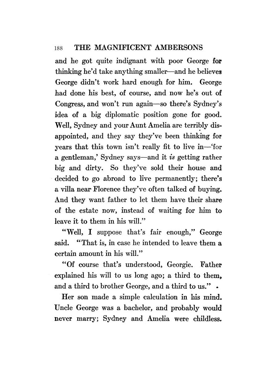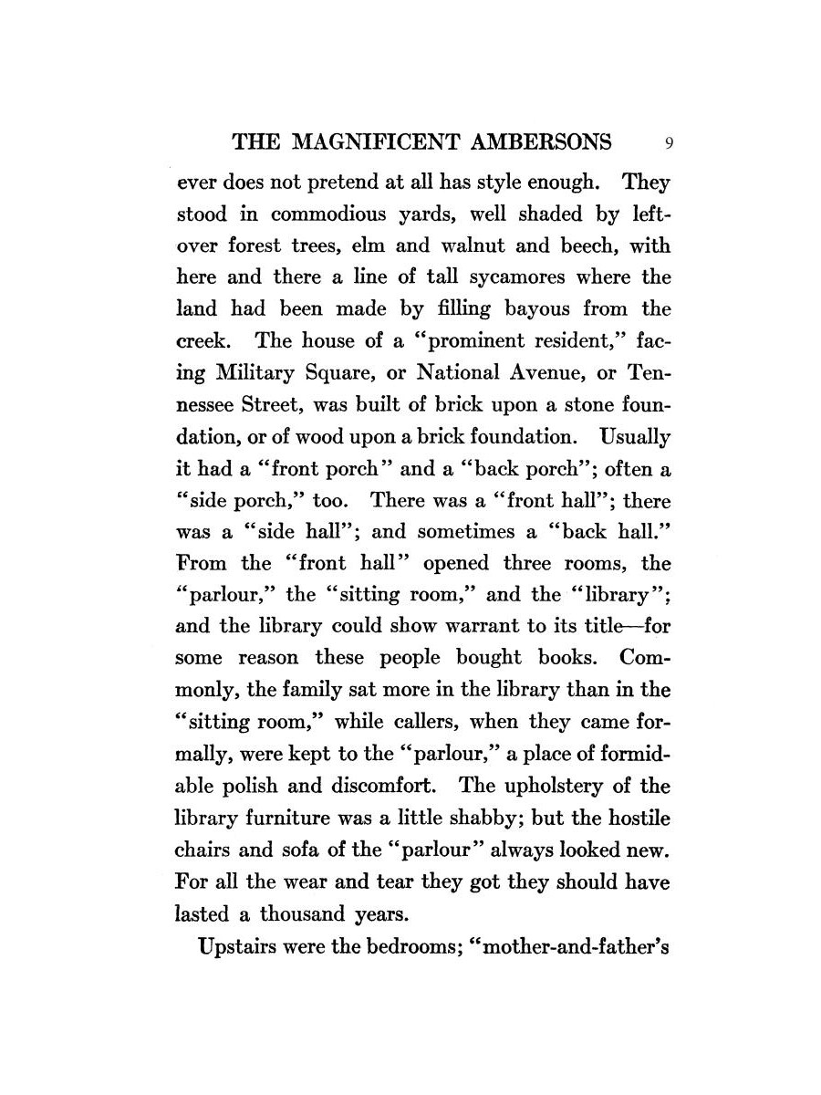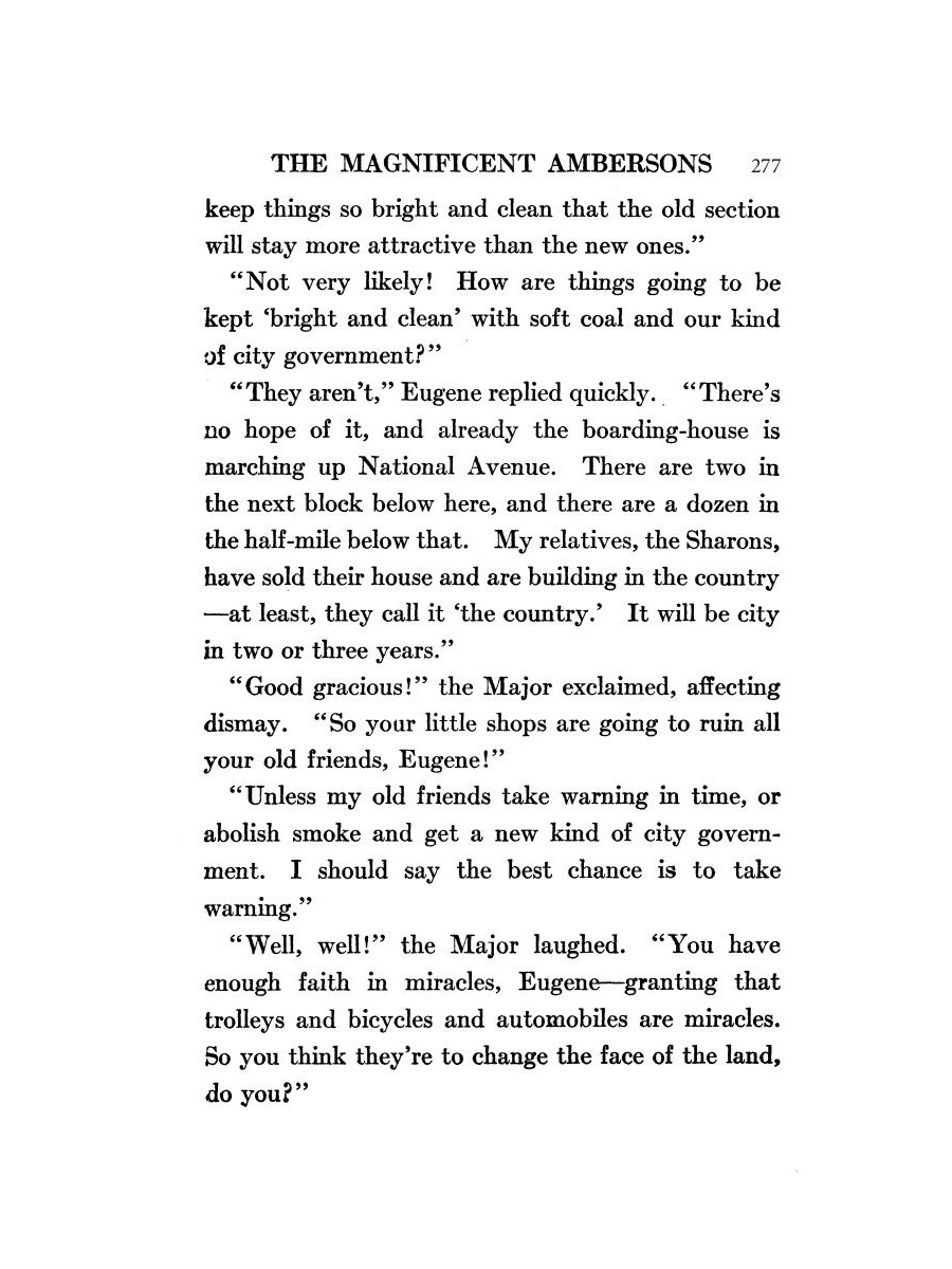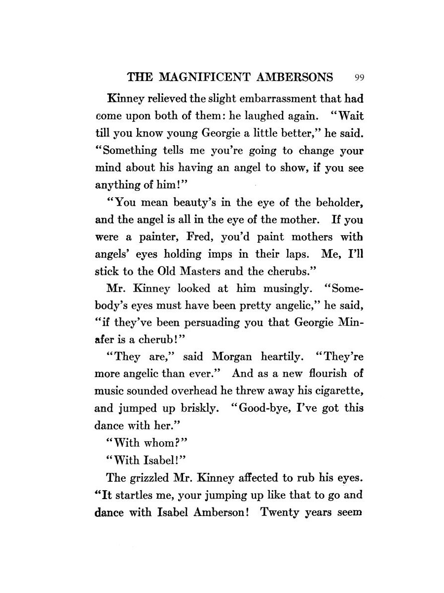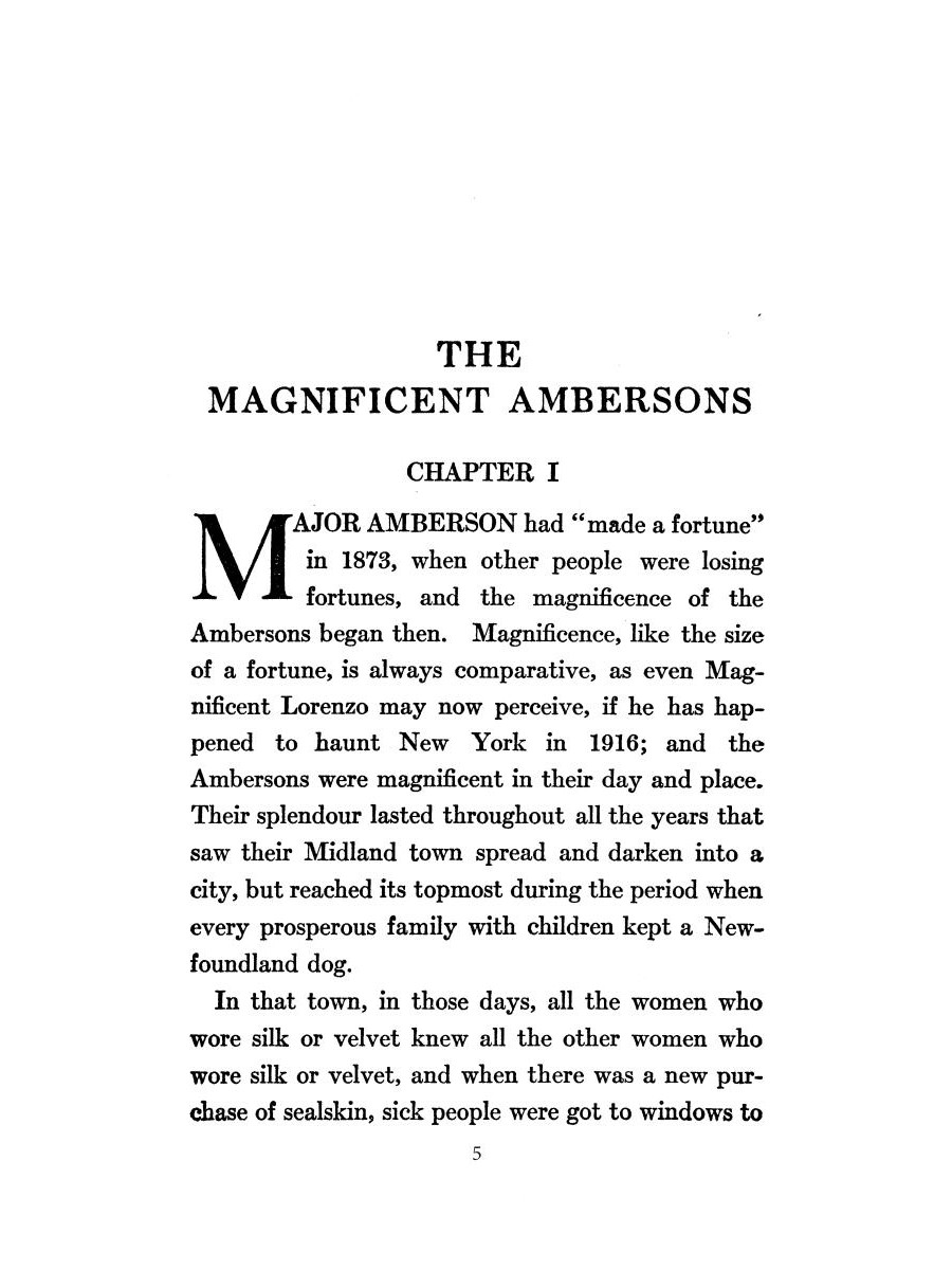 "Великолепные Эмберсоны" - это одно из самых известных произведений Таркингтона, которое было экранизировано Орсоном Уэллсом. Действие разворачивается в начале XX века на Среднем Западе в богатой семье Эмберсонов, веривших в прочность и незыблемость своего положения. Но время не стоит на месте, и привычный мир рушится до основания...