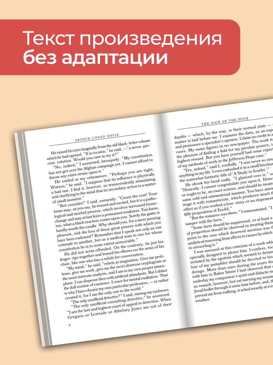 Чтение художественной литературы в оригинале - прекрасный способ совершенствовать английский язык. Блестящий стиль, интригующий сюжет и обаятельные персонажи детективных рассказов знаменитого британского писателя Артура Конана Дойла не дадут оторваться от книги ни на минуту. "Знак четырех" - это вторая повесть о приключениях Шерлока Холмса и доктора Ватсона. В ней прославленный детектив и его верный друг расследуют тайну анонимных посланий, которые получает их клиентка Мэри Морстен. Чтобы выяснить правду героям придется распутать сеть интриг и предательств, ведущих к давно забытому преступлению. Также в книгу вошел сборник рассказов "Записки о Шерлоке Холмсе". Произведения изданы без адаптации и сокращений. Наслаждайтесь приключениями Шерлока Холмса в оригинале!| Издательство | Издательство "АСТ" |