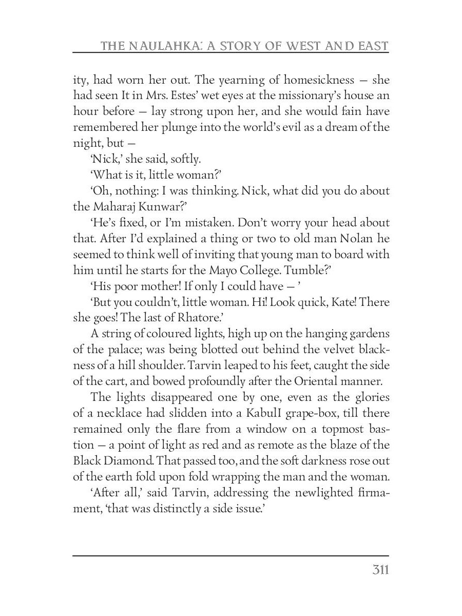 Rudyard Kipling (1865-1936) was an English journalist, short-story writer, poet, and novelist. «The Naulahka» is a remarkable work of fiction by Rudyard Kipling and Wolcott Balestier, came under severe criticism by a section of the society for its alleged anti-feminist contents when it was first published in 1892.