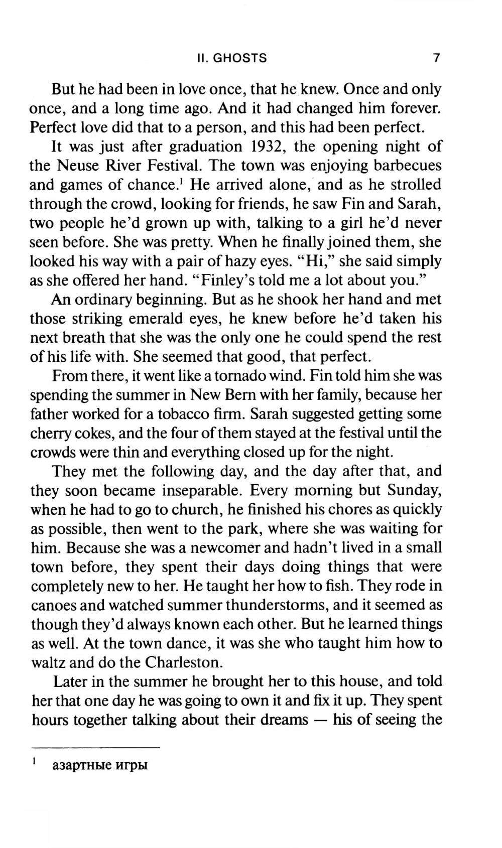 Многие романы о любви повествуют об испытаниях, через которые проходят влюбленные. И нередко такие истории имеют счастливый конец - молодые люди женятся. Роман Николаса Спаркса тоже начинается традиционно, но свадьба героев - это счастливое начало их совместной жизни, а настоящие испытания приходят, когда долгая жизнь, в сущности, уже прожита... Текст сокращен и адаптирован. Уровень В1.| Издательство | Антология |