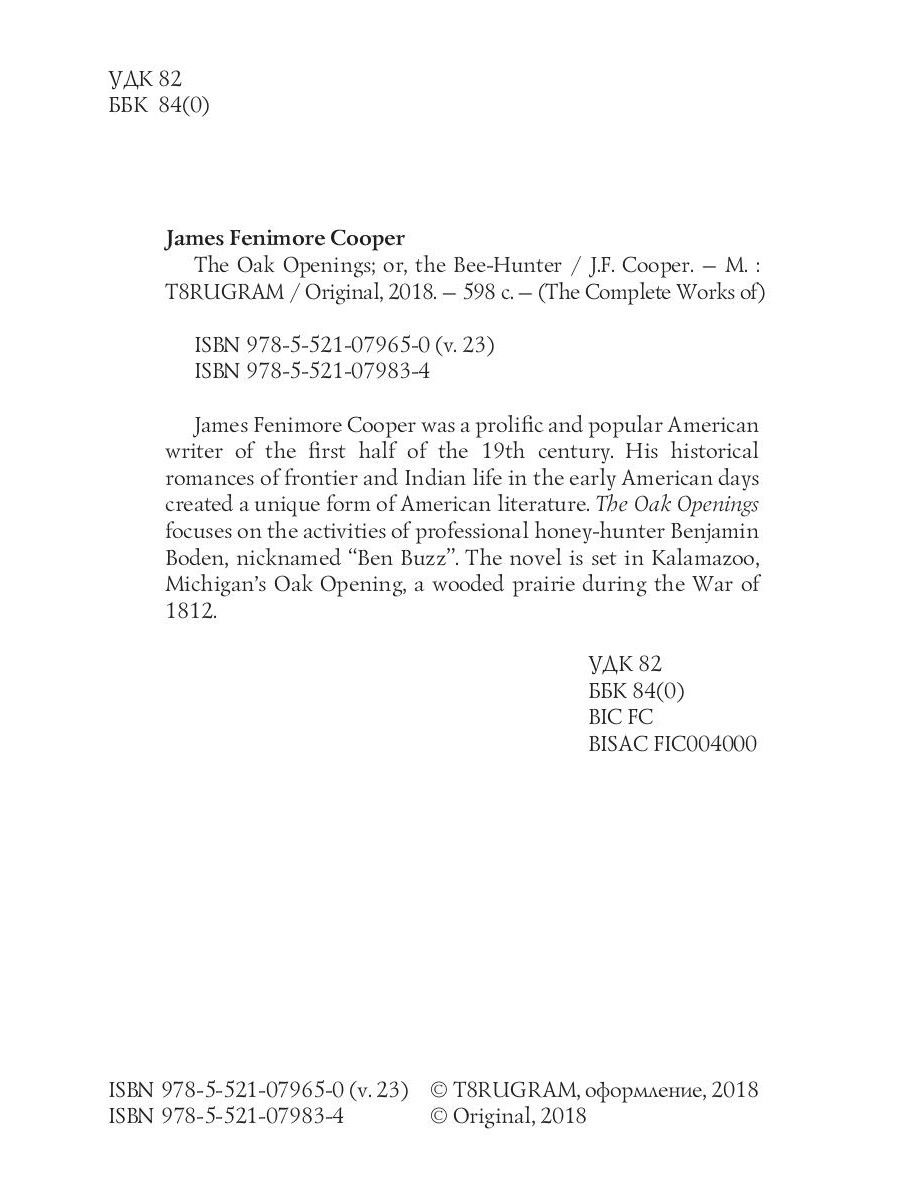Аннотация: The Oak Openings; or, the Bee-Hunter = Прогалины в дубровах, или Охотник за пчелами. Т. 23: на англ.яз