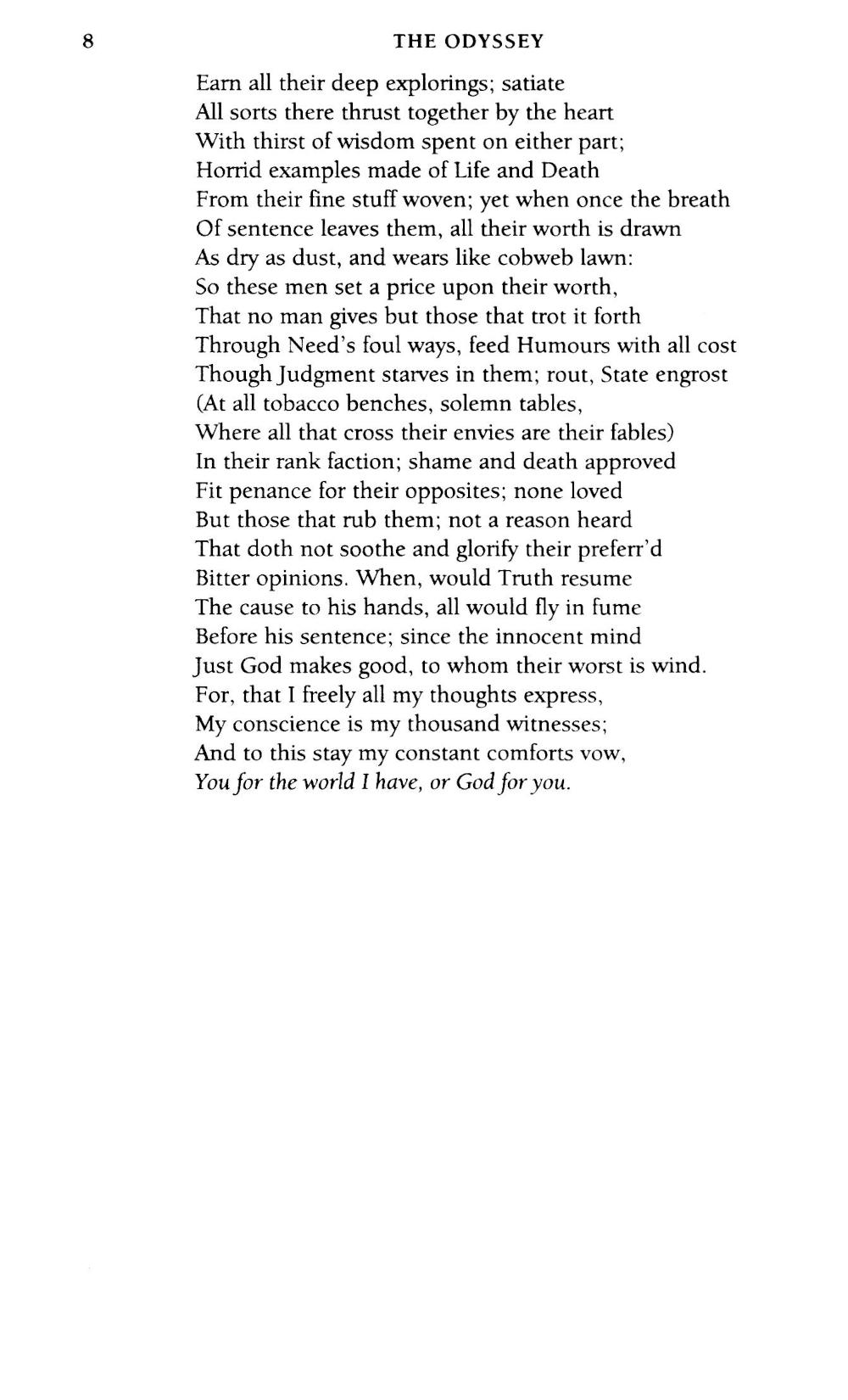 The Odyssey, Homer's great epic describes the many adventures of Odysseus, Greek warrior, as he strives over many years to return to his home island of Ithaca after the Trojan War. His colourful adventures, his endurance, his love for his wife and son have the same power to move and inspire readers today as they did in Archaic Greece, 2800 years ago. This poem has been translated many times over the years, but Chapman's sinewy, gorgeous rendering (1616) stands in a class of its own. Chapman believed himself inspired by the spirit of Homer himself, and matches the breadth and power of the original with a complex and stunning idiom of his own. John Keats expressed his admiration for the resulting work in the famous sonnet, «On first looking into Chapman's Homer: Much have I travelled in the realms of gold...»| Издательство | Wordsworth |