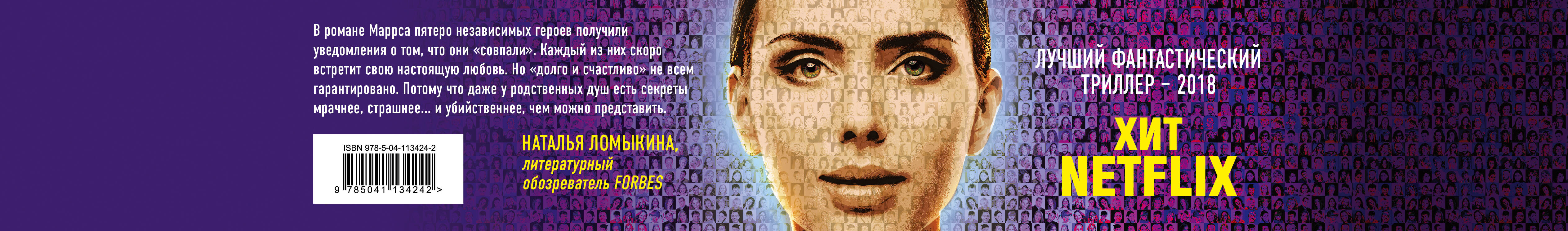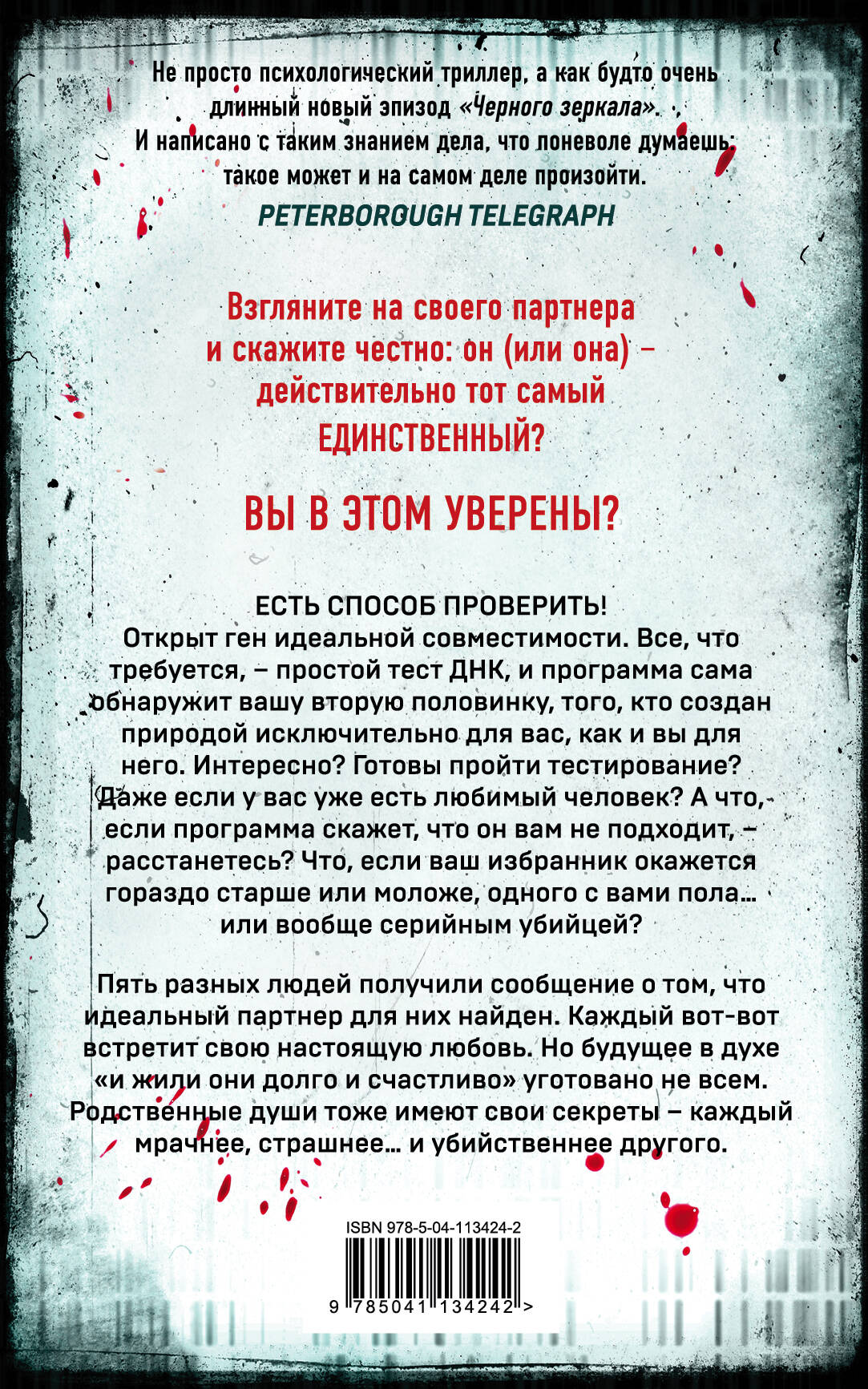 ЛУЧШИЙ ФАНТАСТИЧЕСКИЙ ТРИЛЛЕР-2018 ПО ВЕРСИИ WALL STREET JOURNAL. AMAZON BESTSELLER № 1. ХИТ NETFLIX. Взгляните на своего партнера и скажите честно: он (или она) - действительно тот самый ЕДИНСТВЕННЫЙ? Вы в этом уверены? Есть способ проверить! Открыт ген идеальной совместимости. Все, что требуется - простой тест ДНК, и программа сама обнаружит вашу вторую половинку, того, кто создан природой исключительно для вас, - как и вы для него. Интересно? Готовы пройти тестирование? Даже если у вас уже есть любимый человек? А что, если программа скажет, что он вам не подходит - расстанетесь? Что, если ваш избранник окажется гораздо старше или моложе, одного с вами пола… или вообще серийный убийца? Пять разных людей получили сообщение о том, что идеальный партнер для них найден. Каждый вот-вот встретит свою настоящую любовь. Но будущее в духе «и жили они долго и счастливо» уготовано не всем. Родственные души тоже имеют свои секреты - каждый мрачнее, страшнее… и убийственнее другого. -------------------------------------------------- «Не просто психологический триллер, а как будто очень длинный новый эпизод "Черного зеркала". И написано с таким знанием дела, что поневоле думаешь: такое может и на самом деле произойти». - Peterborough Telegraph «Сплошное удовольствие читать такую ни на что не похожую, умную, заставляющую задуматься книгу». - Питер Джеймс «Мрачный роман для посмеивающихся над Днем святого Валентина». - The New York Post «Чтение, влекущее в темные глубины. Есть что переосмыслить». - The Sun «Шок на каждой следующей странице». - Wall Street Journal «Да уж, пути "настоящей любви" более чем неисповедимы… Это завораживает». - Library Journal «Увлекательный и крайне правдоподобный триллер Маррса поднимает интересные вопросы о нашем будущем, где наука станет играть первую скрипку». - Booklist «Маррс способен заинтриговать одновременно и романтиков, и скептиков». - Kirkus Reviews «В романе Маррса пятеро независимых героев получили уведомления о том, что они "совпали". Каждый из них скоро встретит свою настоящую любовь. Но "долго и счастливо" не всем гарантировано. Потому что даже у родственных душ есть секреты мрачнее, страшнее... и убийственнее, чем можно представить». - Наталья Ломыкина, литературный обозреватель FORBES| Издательство | ООО "Издательство "Эксмо" |