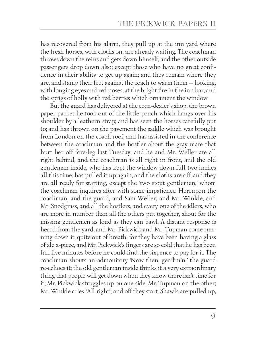 This novel, written when Dickens was only 25 years old, immediately brought him immense popularity. Presenting a host of now-classic characters in a series of adventures, it displays the richness of his skills of characterization and description. Mr Samuel Pickwick is general chairman of the Pickwick Club, whose members - Tracy Tupman, Augustus Snodgrass, and Nathaniel Winkle - form a society to report their adventures and observations. From these reports emerge the rascal Jingle and his servant, Job Trotter, the engaging Sam Weller, the greedy drunkard Stiggins, and many more of Dickens's best-loved characters.