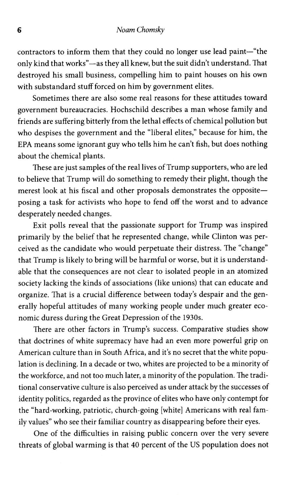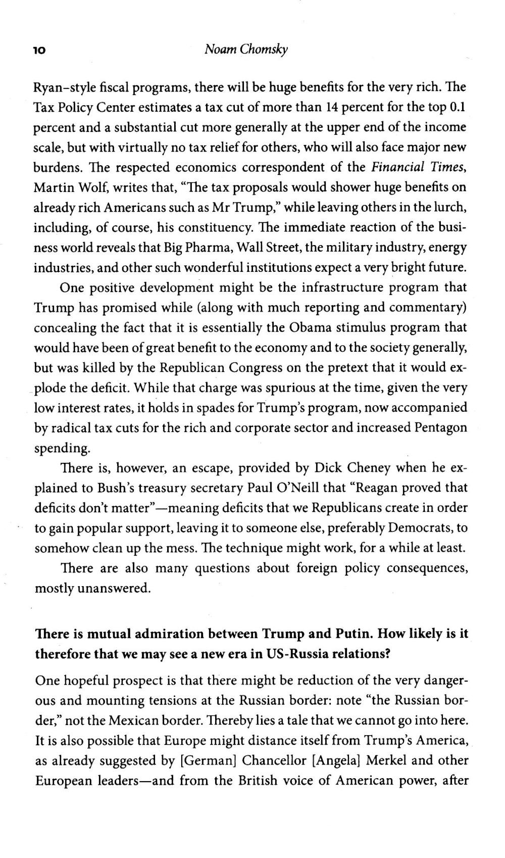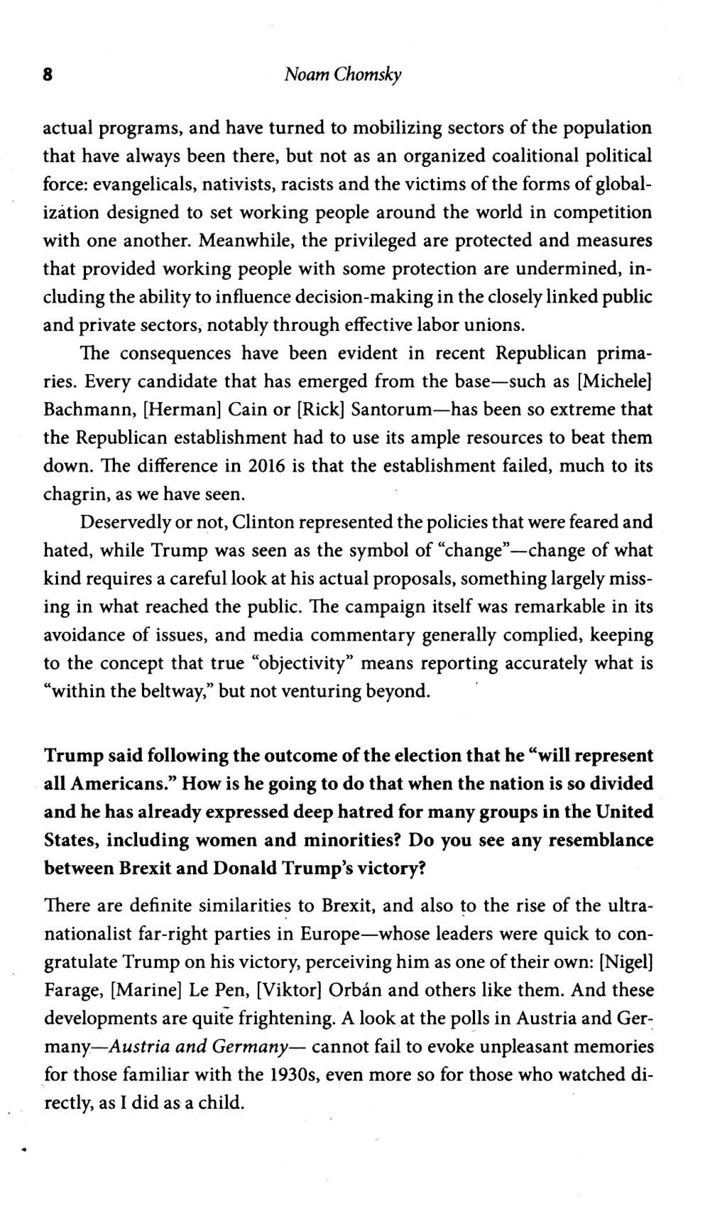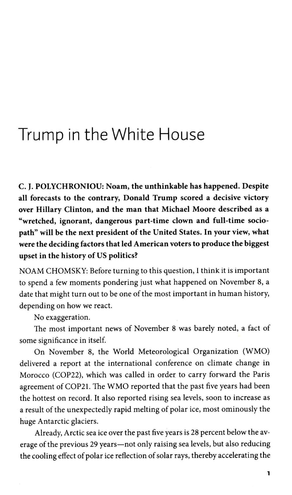 In this powerful collection of interviews, Noam Chomsky exposes the problems of our world today, as we stand in this period of monumental change, preparing for a more hopeful tomorrow. He sheds light on the phenomenon of right-wing populism, and exposes the catastrophic nature and impact of authoritarian policies on people, the environment and the planet as a whole. He captures the dynamics of the brutal class warfare launched by the masters of capital to maintain and even enhance the features of a dog-eat-dog society. And he celebrates the recent unprecedented mobilization of millions of people internationally against neoliberal capitalism, racism and police violence. We stand at a precipice and we must fight to pull the world back from it.| Издательство | Penguin Books Ltd |