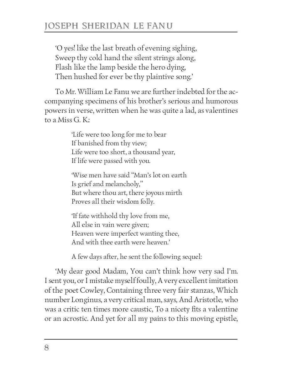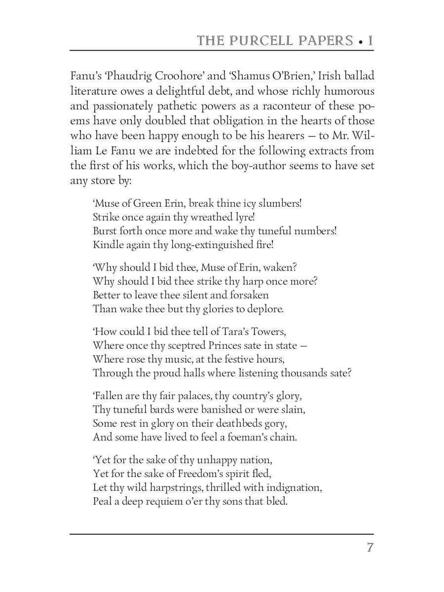 Joseph Thomas Sheridan Le Fanu (1814 -1873) was an Irish writer of Gothic novels, one of the most influential ghost story writers of the nineteenth century. "The Purcell Papers I" is a collection of early works of the author, united by one vivid dark theme. All these stories are a prime example of Victorian Gothic art, which inspired a whole genre.