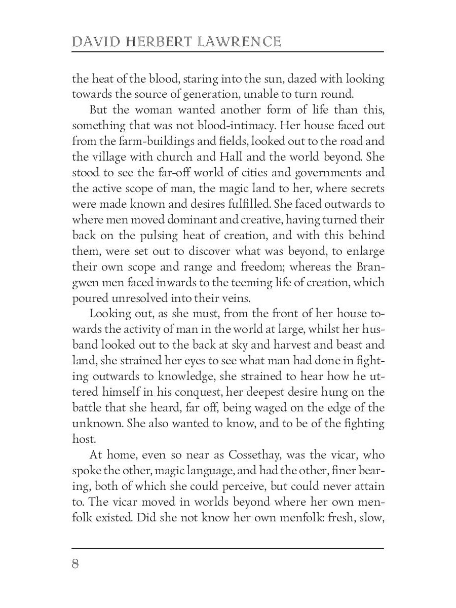 David Herbert Lawrence (1885-1930) was an English novelist, poet, playwright and literary critic, one of the key writers of the early twentieth century, most famous for his criticism of rationalism and industrialization. Set in the Nottinghamshire, England, The Rainbow follows three generations of the Brangwens, a strong and energetic family, deeply attached to the land they own. The book focuses on the individual's struggle against the confining rules and restrictions of social life.| Издательство | Т8 RUGRAM |