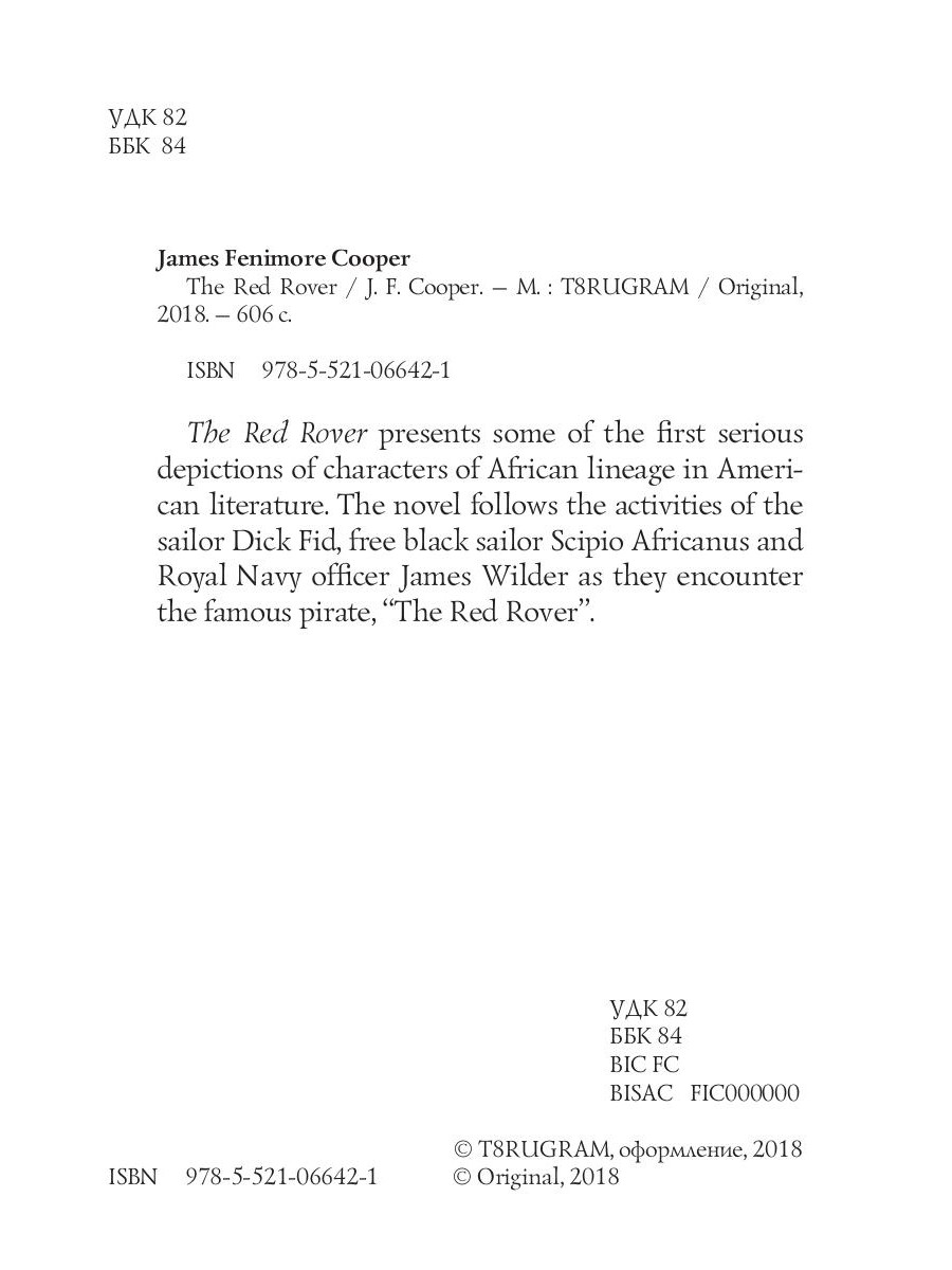 The Red Rover presents some of the first serious depictions of characters of African lineage in American literature. The novel follows the activities of the sailor Dick Fid, free black sailor Scipio Africanus and Royal Navy officer James Wilder as they encounter the famous pirate, "The Red Rover".| Издательство | Т8 RUGRAM |