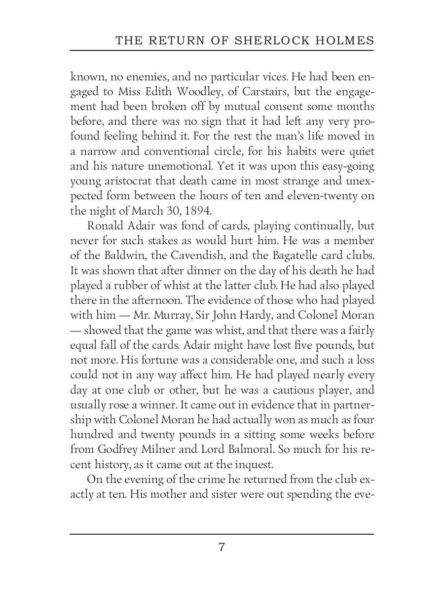 Arthur Conan Doyle was a British writer best known for his detective fiction featuring the character Sherlock Holmes. His works also include fantasy and science fiction, as well as plays, romances, non-fiction and historical novels. The Return of Sherlock Holmes was the first Holmes collection since 1893, when Holmes had "died" in "The Final Problem". The first story is set in 1894 and has Holmes returning in London and explaining the period from 1891-1894, a period called "The Great Hiatus" by Sherlockian enthusiasts.| Издательство | Т8 RUGRAM |