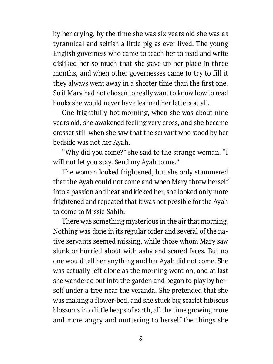 «Таинственный сад» - роман англо-американской писательницы Фрэнсис Ходжсон Бернетт, впервые опубликованный отдельным изданием в 1911 году. Он рассказывает историю осиротевшей Мэри Леннокс, которая после смерти родителей переезжает из Британской Индии в Англию, в большой дом своего дяди, полный тайн. Однажды Мэри обнаруживает секретный сад, окруженный стенами и запертый на ключ. С помощью новых друзей Мэри находит путь внутрь и решает вернуть сад к жизни… Неадаптированное издание на английском языке.| Издательство | Т8 RUGRAM |