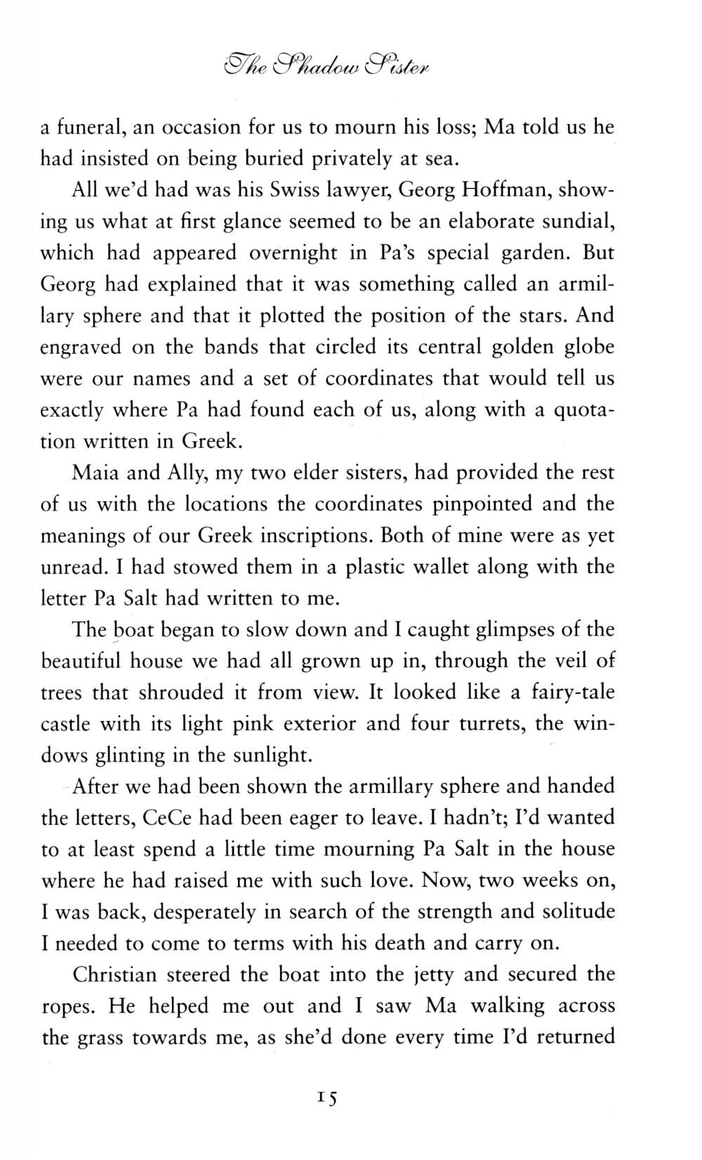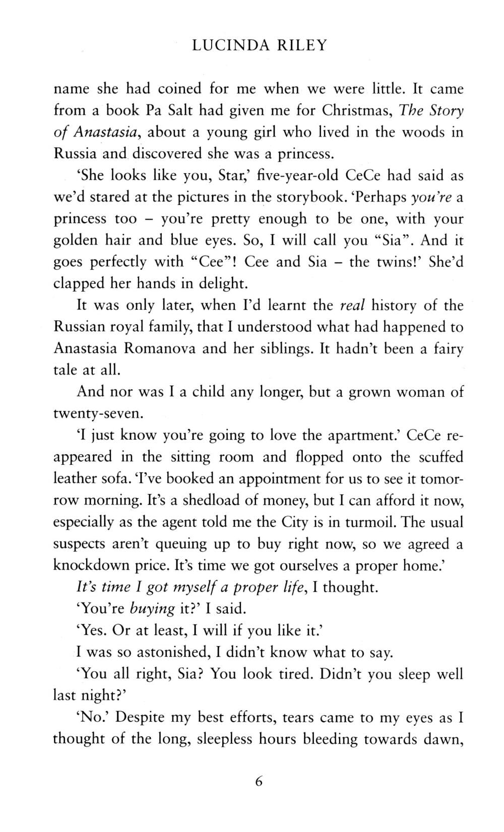 Following on from the bestselling The Seven Sisters and The Storm Sister, The Shadow Sister is the third book in Lucinda Riley`s spellbinding series, loosely based on the mythology of the Seven Sisters star cluster. Star D`Apliese is at a crossroads in her life after the sudden death of her beloved father - the elusive billionaire, named Pa Salt by his six daughters, all adopted by him from the four corners of the world. He has left each of them a clue to their true heritage, but Star - the most enigmatic of the sisters - is hesitant to step out of the safety of the close relationship she shares with her sister CeCe. In desperation, she decides to follow the first clue she has been left, which leads her to an antiquarian bookshop in London, and the start of a whole new world . . . A hundred years earlier, headstrong and independent Flora MacNichol vows she will never marry. She is happy and secure in her home in the Lake District, living close to her idol, Beatrix Potter, when machinations outside of her control lead her to London, and the home of one of Edwardian society`s most notorious players, Alice Keppel. Flora is pulled between passionate love and duty to her family, but finds herself a pawn in a game - the rules of which are only known to others, until a meeting with a mysterious gentleman unveils the answers that Flora has been searching for her whole life . . . As Star learns more of Flora`s incredible journey, she too goes on a voyage of discovery, finally stepping out of the shadow of her sister and opening herself up to the possibility of love.| Издательство | Pan Books |