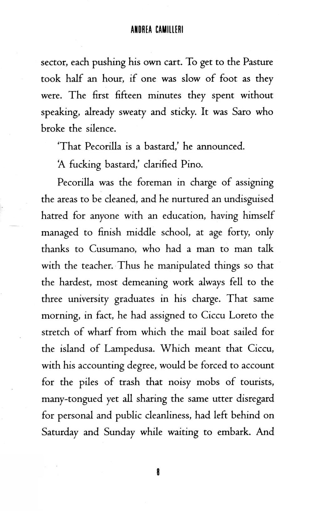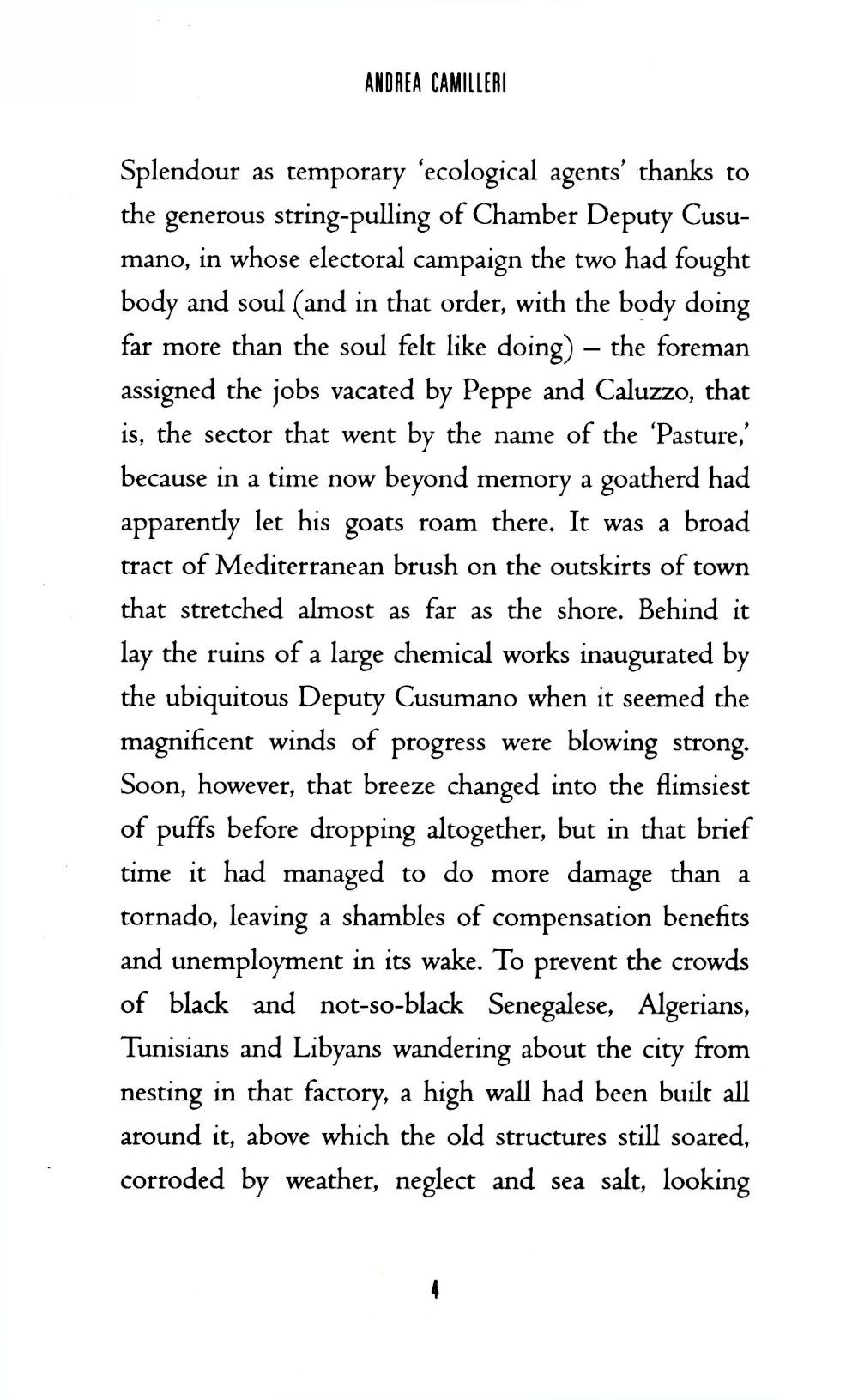 The goats of Vigata once grazed on the trash-strewn site still known as the Pasture. Now local enterprise of a different sort flourishes: drug dealers and prostitutes of every flavour. But their discreet trade is upset when two employees of the Splendour Refuse Collection Company discover the body of engineer Silvio Luparello, one of the local movers and shakers, apparently deceased in flagrante at the Pasture. The coroner's verdict is death from natural causes - refreshingly unusual for Sicily. But Inspector Salvo Montalbano, as honest as he is streetwise and as scathing to fools and villains as he is compassionate to their victims, is not ready to close the case - even though he's being pressured by Vigata's police chief, judge, and bishop. Picking his way through a labyrinth of high-comedy corruption, delicious meals, vendetta firepower, and carefully planted false clues, Montalbano can be relied on, whatever the cost, to get to the heart of the matter.| Издательство | Picador |