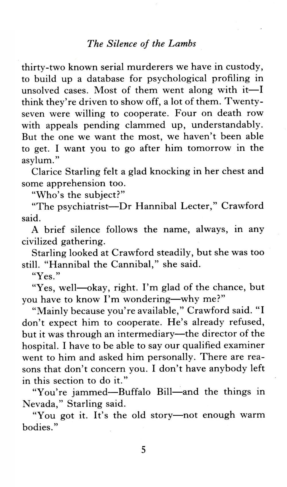 A serial murderer known only by a grotesquely apt nickname-Buffalo Bill-is stalking women. He has a purpose, but no one can fathom it, for the bodies are discovered in different states. Clarice Starling, a young trainee at the FBI Academy, is surprised to be summoned by Jack Crawford, chief of the Bureau's Behavioral Science section. Her assignment: to interview Dr. Hannibal Lecter-Hannibal the Cannibal-who is kept under close watch in the Baltimore State Hospital for the Criminally Insane. Dr. Lecter is a former psychiatrist with a grisly history, unusual tastes, and an intense curiosity about the darker corners of the mind. His intimate understanding of the killer and of Clarice herself form the core of "The Silence of the Lambs"-an ingenious, masterfully written book and an unforgettable classic of suspense fiction.| Издательство | Arrow Books |
