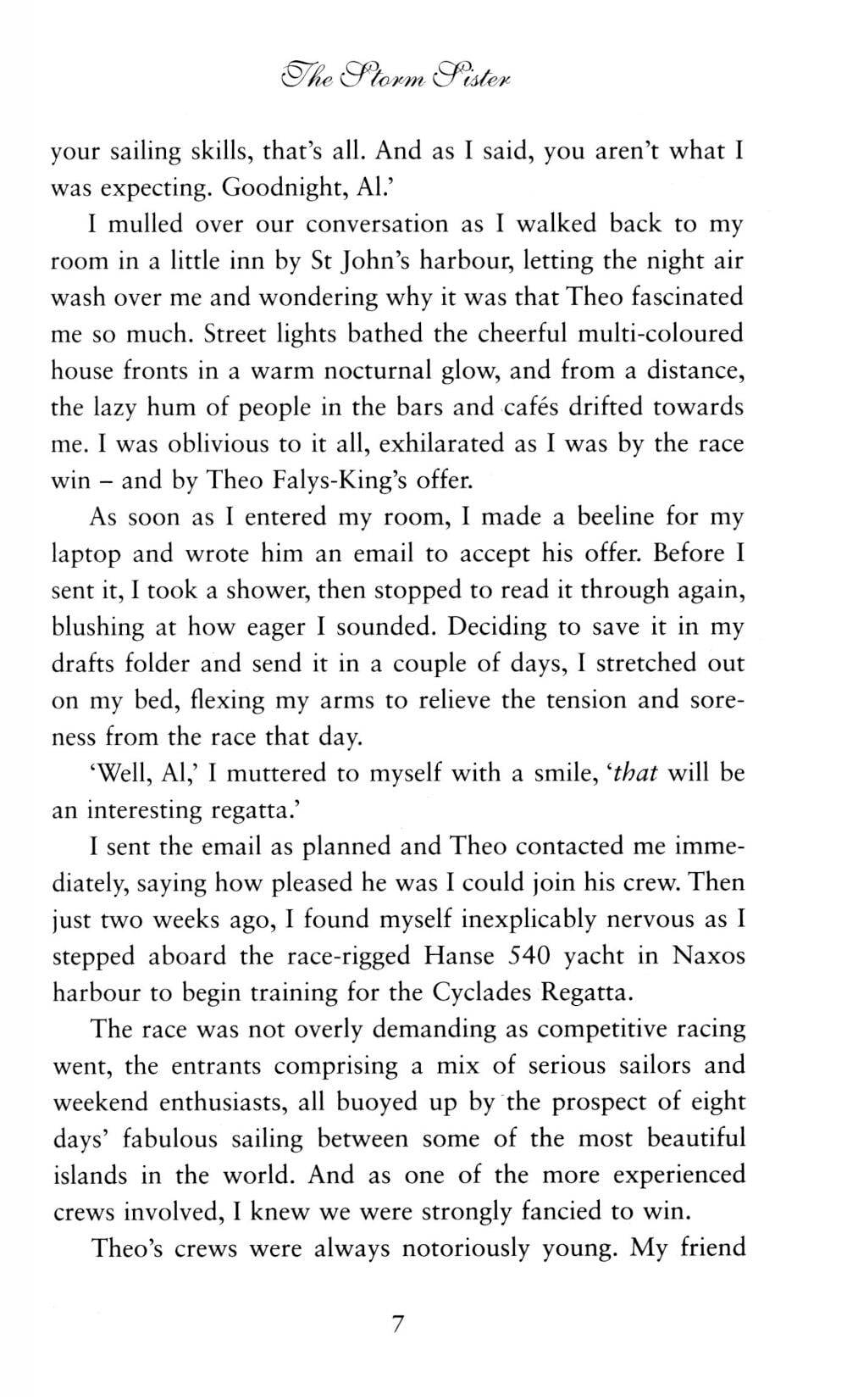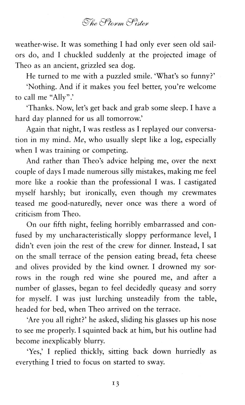 Following the bestselling The Seven Sisters, The Storm Sister is the second book in Lucinda Riley`s spellbinding series based loosely on the mythology surrounding the famous star constellation. Ally D`Apliese is about to compete in one of the world`s most perilous yacht races, when she hears the news of her adoptive father`s sudden, mysterious death. Rushing back to meet her five sisters at their family home, she discovers that her father - an elusive billionaire affectionately known to his daughters as Pa Salt - has left each of them a tantalizing clue to their true heritage. Ally has also recently embarked on a deeply passionate love affair that will change her destiny forever. But with her life now turned upside down, Ally decides to leave the open seas and follow the trail that her father left her, which leads her to the icy beauty of Norway . . . There, Ally begins to discover her roots - and how her story is inextricably bound to that of a young unknown singer, Anna Landvik, who lived there over a hundred years before, and sang in the first performance of Grieg`s iconic music set to Ibsen`s play `Peer Gynt`. As Ally learns more about Anna, she also begins to question who her father, Pa Salt, really was. And why is the seventh sister missing?| Издательство | Pan Books |
