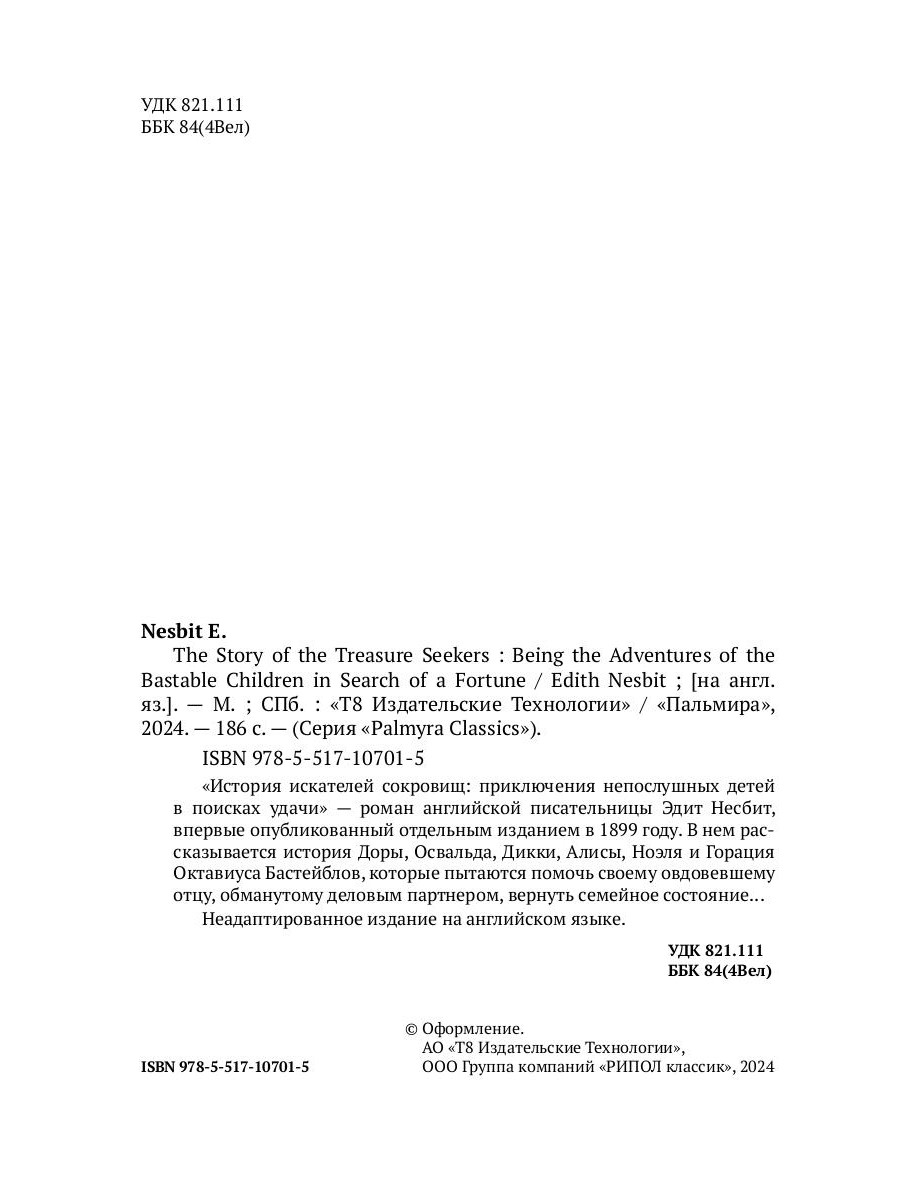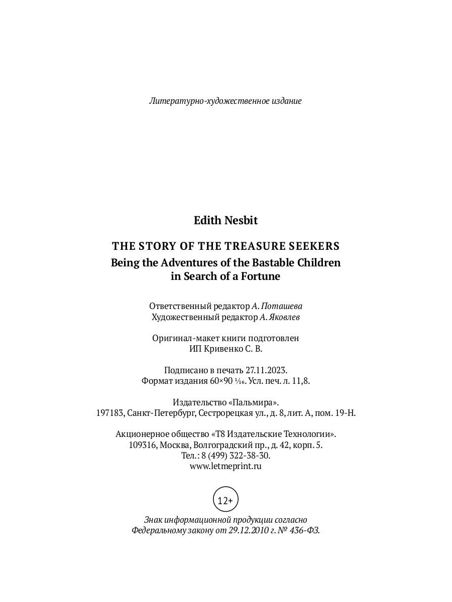Аннотация: The Story of the Treasure Seekers. Being the Adventures of the Bastable Children in Search of a Fortune: на англ.яз