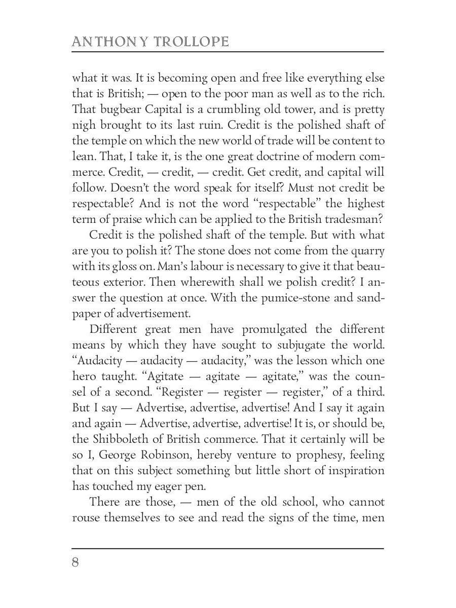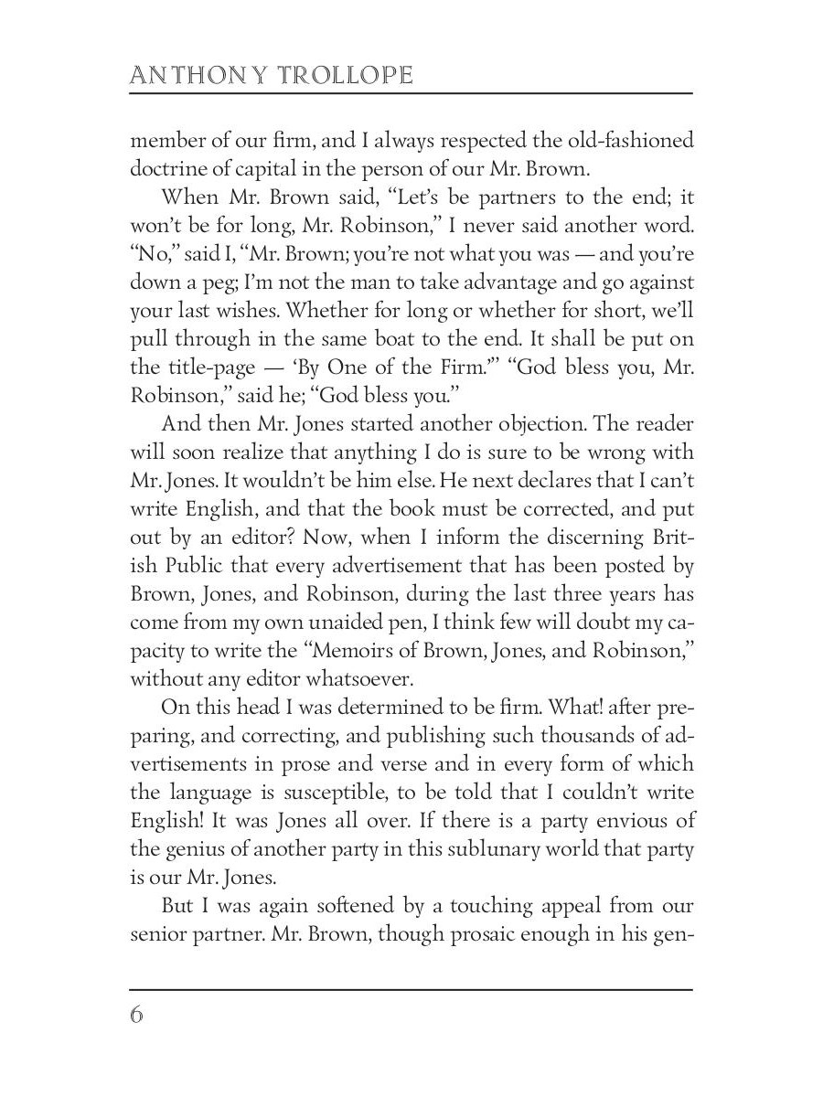 Anthony Trollope (1815-1882) was an English novelist of the Victorian era. Among his best-known works is a series of novels collectively known as the Chronicles of Barsetshire, which revolves around the imaginary county of Barsetshire. "The Struggles of Brown, Jones and Robinson" is a satire written about a clothing business that is doomed to failure from the very start due to its owner's lack of initiative. Through his masterful narrative and subtle hints, Trollope shows us how the risks of running a business are extremely real.| Издательство | Т8 RUGRAM |