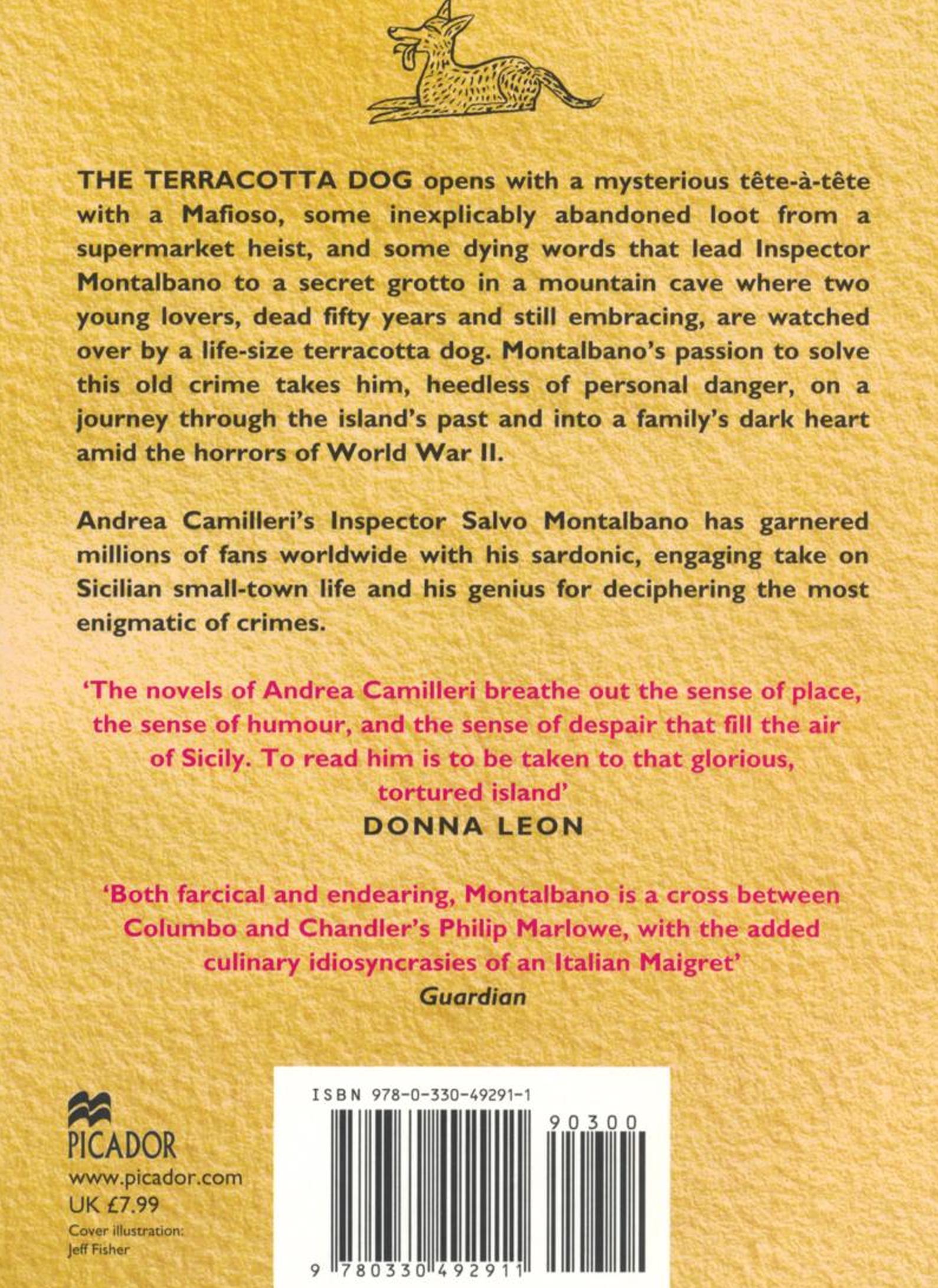 The Terracotta Dog opens with a mysterious tete-a-tete with a Mafioso, some inexplicably abandoned loot from a supermarket heist, and some dying words that lead Inspector Montalbano to a secret grotto in a mountain cave where two young lovers dead fifty years and still embracing are watched over by a life-size terracotta dog. Montalbano's passion to solve this old crime takes him, heedless of personal danger, on a journey through the island's past and into a family's dark heart amid the horrors of World War II. Andrea Camilleri's Inspector Salvo Montalbano has garnered millions of fans worldwide with his sardonic, engaging take on Sicilian small-town life and his genius for deciphering the most enigmatic of crimes.| Издательство | Pan Macmillan |