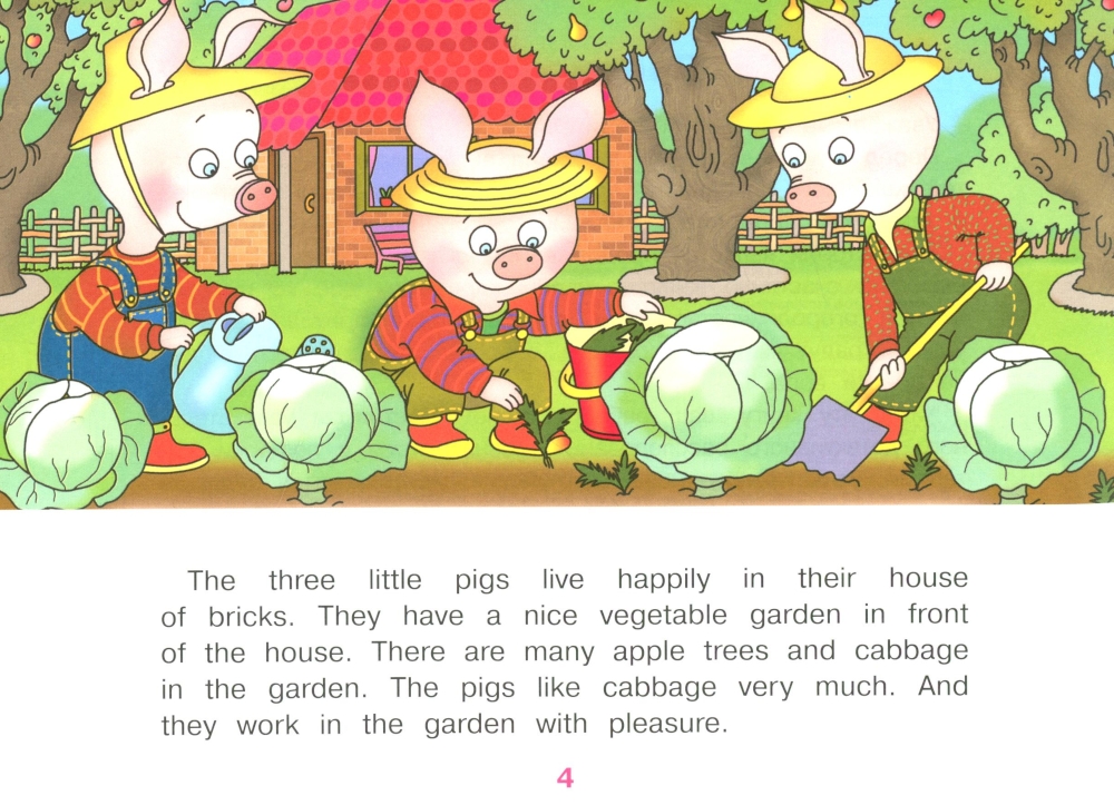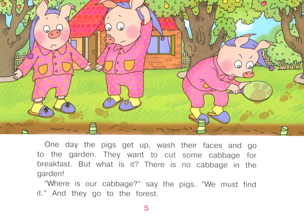 Пособие может быть использовано при обучении английскому языку детей в дошкольных образовательных учреждениях и в начальной школе. Эта книга является продолжением сказки о трех поросятах. Поросята счастливо живут в своем кирпичном домике, как вдруг в одно прекрасное утро у них пропадает капуста. Читая эту увлекательную детективную историю, ребенок узнает много новых английских слов, научится правильно задавать вопросы, использовать повелительные предложения. Книга рассчитана на детей, которые уже освоили элементарные слова и выражения.| Издательство | Айрис-Пресс |