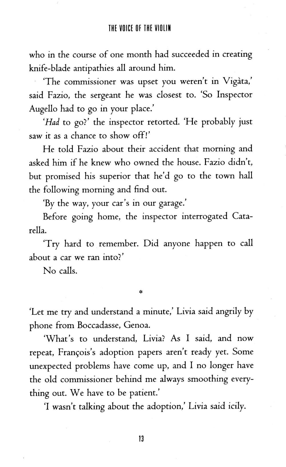 Inspector Salvo Montalbano, with his compelling mix of humor, cynicism, and compassion, has been compared to Georges Simenon's, Dashiel Hammett's, and Raymond Chandler's legendary detectives. In this latest novel, Montalbano's gruesome discovery of a lovely, naked young woman suffocated in her bed immedi-ately sets him on a search for her killer. Among the suspects are her aging husband, a famous doctor; a shy admirer, now disappeared; an antiques-dealing lover from Bologna; and the victim's friend Anna, whose charms Montalbano cannot help but appreciate. But it is a mysterious, reclusive violinist who holds the key to this murder.| Издательство | Picador |