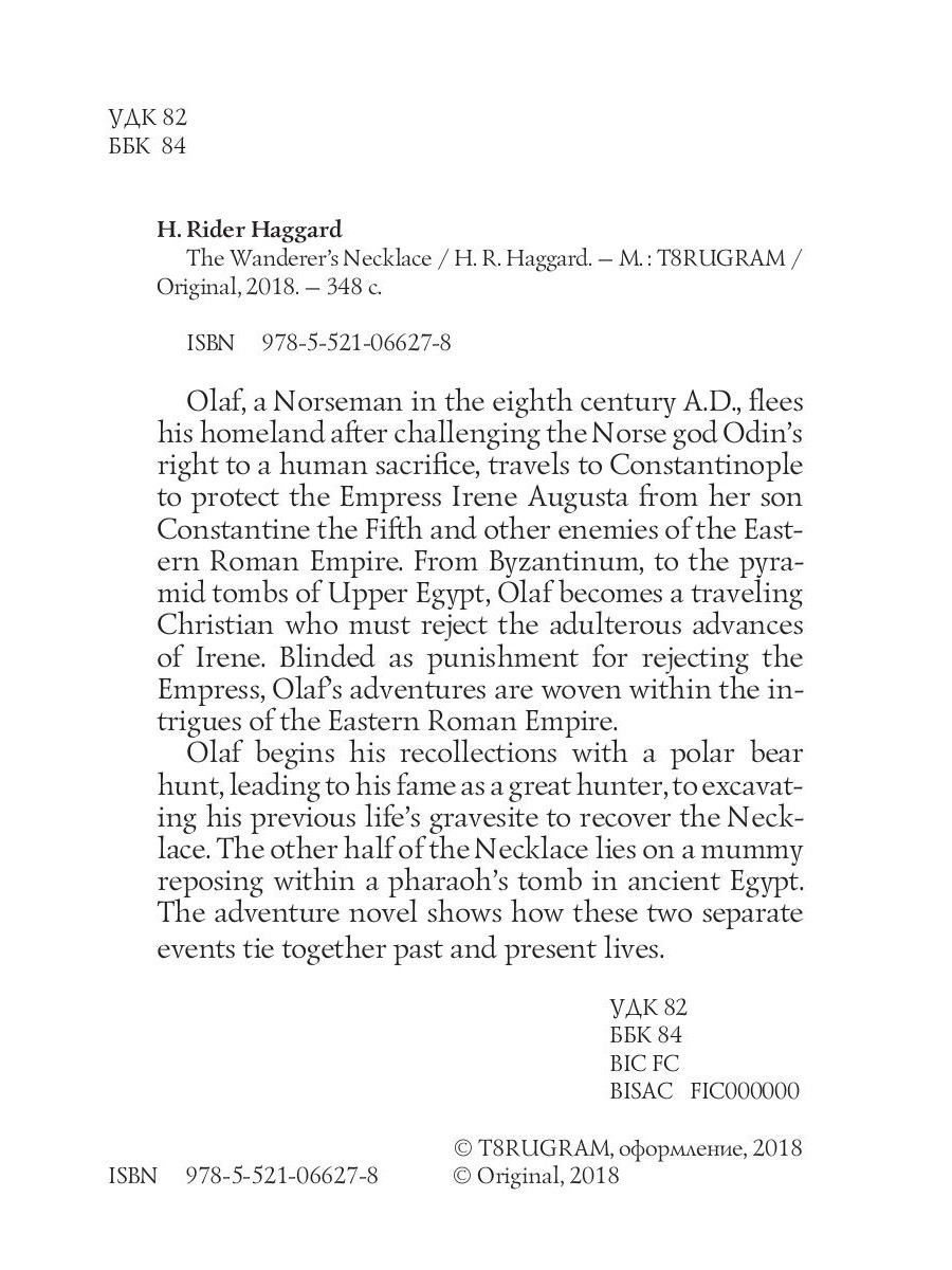 Olaf begins his recollections with a polar bear hunt, leading to his fame as a great hunter, to excavating his previous life's gravesite to recover the Necklace. The other half of the Necklace lies on a mummy reposing within a pharaoh's tomb in ancient Egypt. The adventure novel shows how these two separate events tie together past and present lives.